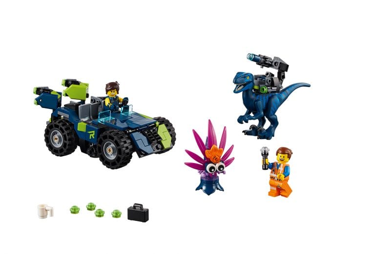 Kids can display their master building versatility when they rebuild the 3-in-1 offroader and Recon Rex-o-saurus into the Rex-o-saurus Quad or Execu-Rex-o-saurus. The offroader seats 2 minifigures and has a rotating rear turret with 2 stud shooters, while the Recon Rex-o-saurus features snapping jaws, posable legs, 2 stud shooters and a buildable removable gun (non-shooting) that can also be used as a minifigure weapon. Includes Rex Dangervest and Emmet minifigures and a buildable Plantimal character.