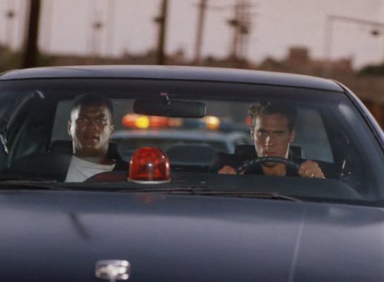 The film sees Gary Daniels as a teacher unwittingly becoming a guinea pig super soldier who goes on the run to clear his name and track the people behind everything. The highlight car chase in this has Daniels hitching a lift in a fuel tanker having just blitzed his way out of a secret lab. He’s got the police on his tail and inevitably has to chuck the driver out and take over. Cue a lengthy (10 minutes no less) sequence where the truck is chased by cars, many of which end up exploding, another truck, which ends up tipping over across the lanes of traffic and having cars flip and explode through it (a PM speciality) before ending with a game of chicken between Daniels’ truck and a commandeered classic American (yellow) school bus. They collide, by which time Daniels is surfing the roof and he catapults himself off it and clear of a massive explosion of vehicles to safety. Insane…kudos Spiros (and gang). Sidenote: Razatos also oversaw the action on another film called Rage (starring Lorenzo Lamas and Gary Busey) that has a great chase in it with a car drifting under a truck and riding between its front and back wheels.