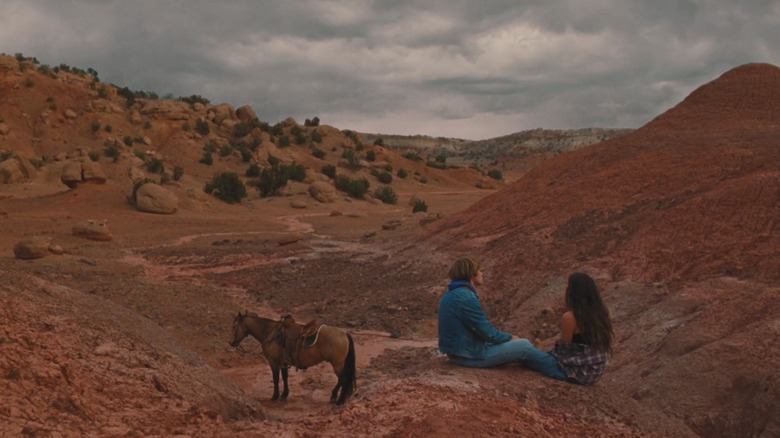 First, Dylan is swept up in a massive crush on Sky, going as far as lying up against a rock in the middle of nowhere to fantasize about her sexually. It’s a scene that could have gone wrong fast, but it puts the honesty of this character front and center, allowing everything to feel organic and real. The lush visuals from cinematographer Katelin Arizmendi and a score from Nick Urata that is mostly nonexistent unless it is swelling alongside overwhelming emotions accentuate that relatable honesty.