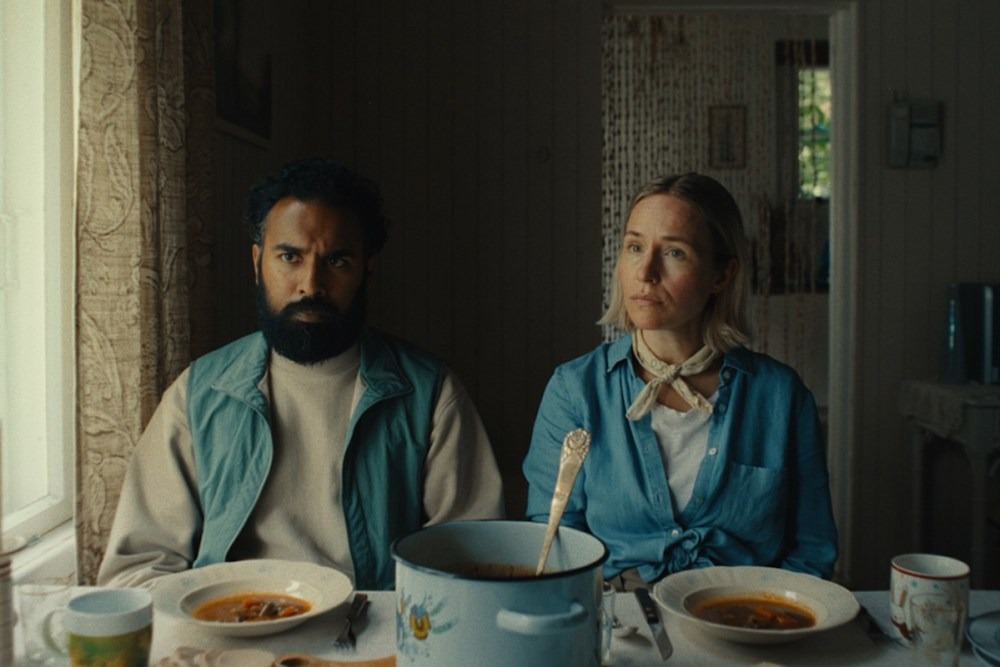 There is esoteric comedy, and then there is writer/director Evan Twohy’s Bubble & Squeak. With its aggressively deadpan tone that seems to be imitating a previous Sundance breakout, Napoleon Dynamite, one partially understands what the filmmaker is trying to do here in adapting his play. This particular riff on that style of comedy centers on honeymooning couple Declan (Himesh Patel) and Delores (Sarah Goldberg), withheld in customs for an unspecified European country prepared to execute anyone who smuggles in cabbages. During a war (also unspecified), all the citizens had to eat were cabbages, so now the vegetable has a soiled history and has been banned from the country. Delores also smells like cabbages.