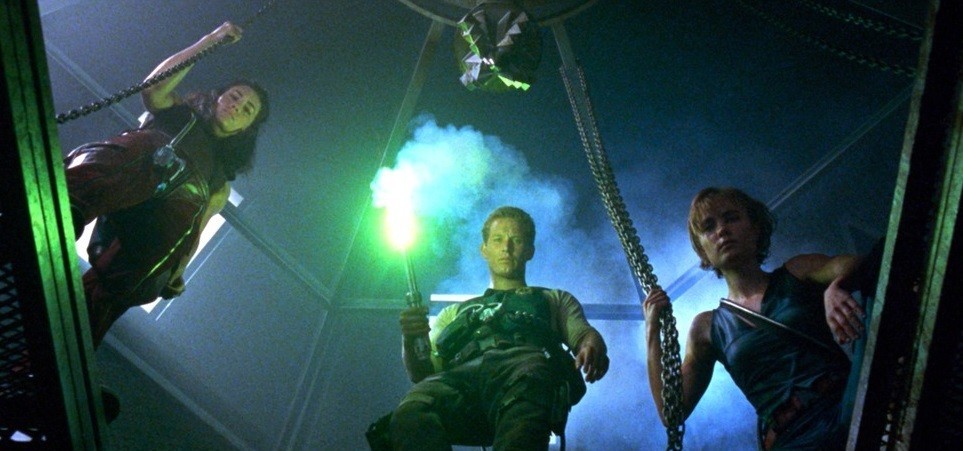 In some ways, Pitch Black is a bit of a throwback. Rather than go all out with a CGI fest, director and writer David Twohy (Ken and Jim Wheat were co-writers) took an approach that’s similar to the movie Alien, where the thrills involve not knowing what’s going to jump out at the characters. Like Alien, the film opens with the characters in cryo-sleep on the commercial transport ship Hunter-Gratzner. They quickly end up on an unknown planet when an accident kills the captain and forces an emergency landing.