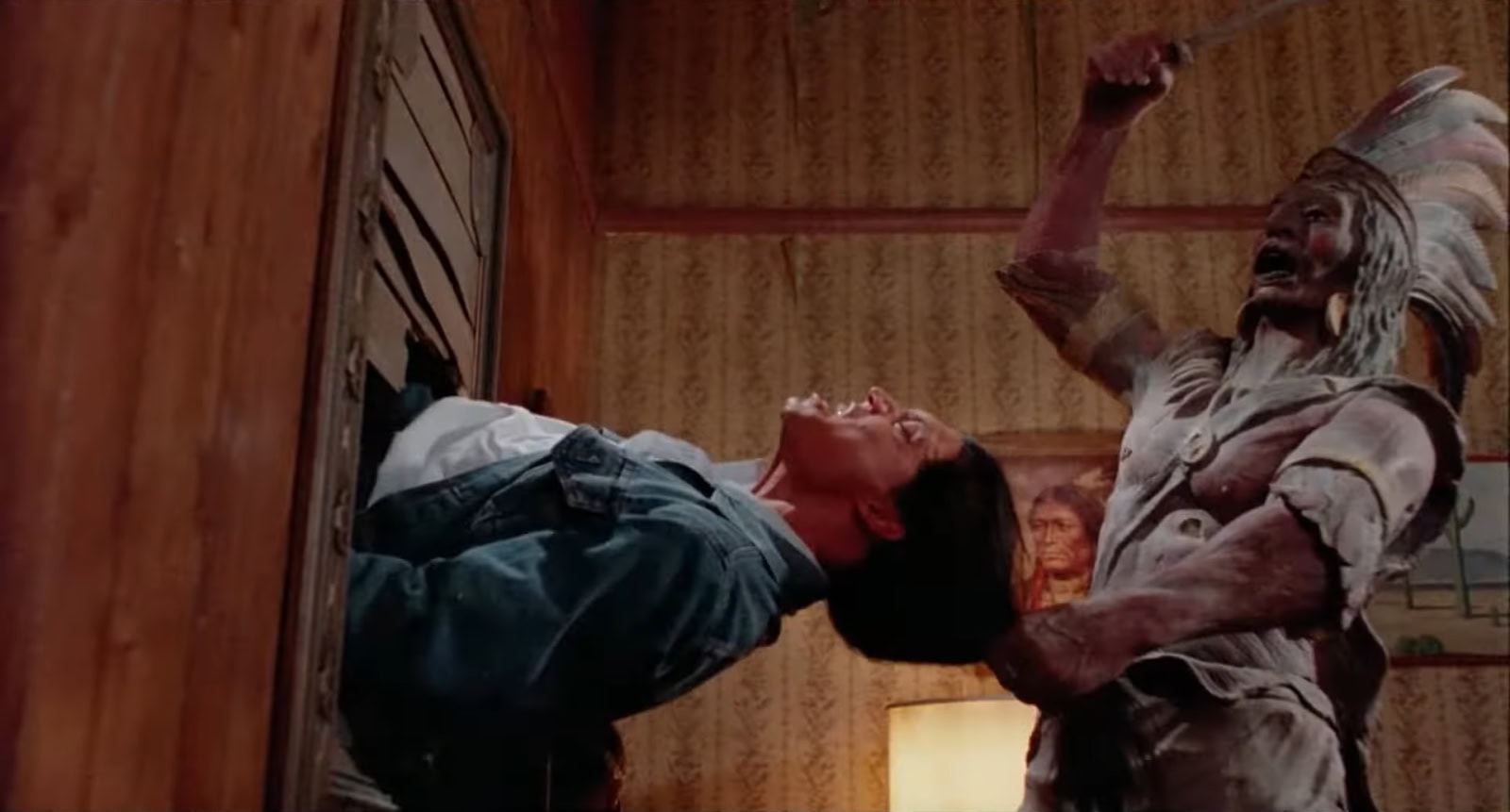 The opening story, Old Chief Wood’nhead, takes its time establishing George Kennedy and Dorothy Lamour as aging shopkeepers in a dying town. The tone is gentle, even sentimental, before a trio of thugs burst in and the titular wooden statue comes to vengeful life. Gornick shoots it with patience, using shadows and suggestion more than spectacle, but when the carnage begins, it’s as satisfying as a ghost-train ride. Kennedy’s quiet dignity keeps it from descending into pure kitsch, though the pacing wobbles.