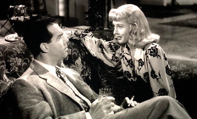 Double Indemnity is notable because not only is it an early example of a film noir, but the script is full of Billy Wilder’s trademark snappy patter. In particular, the first time Walter meets Phyllis, their back-and-forth is peppered with double entendres as the pair express their interest in each other. They avoid direct language, as if they don’t want to speak their true intentions out loud for fear of someone hearing them.