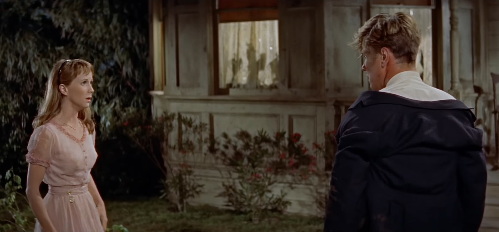 Based on the final part of John Steinbeck’s sprawling 1952 novel of the same name, East of Eden introduces us to Cal as he wanders a neighborhood in Monterey, California. He’s interested in a house where a woman named Kate (Jo Van Fleet) operates a brothel. We soon learn that Kate is Cal’s missing mother, a fact that he hides from his father, Adam (Raymond Massey), and his brother, Aron (Richard Davalos), who’s in a relationship with Abra Bacon (Julie Harris).