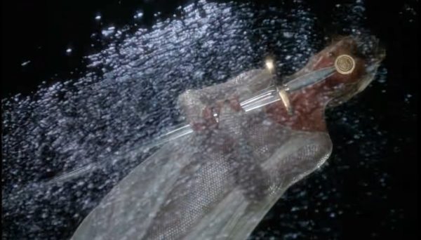 That would probably be enough for fans, but Arrow went the extra mile with a third disc that contains another home video first: the TV-friendly version of the film. While Excalibur doesn’t go crazy with sex and violence, there is enough of it, plus some nudity, that it was rated R in theaters. Nothing new was added for TV broadcast, aside from some new voice-over from Merlin here and there.