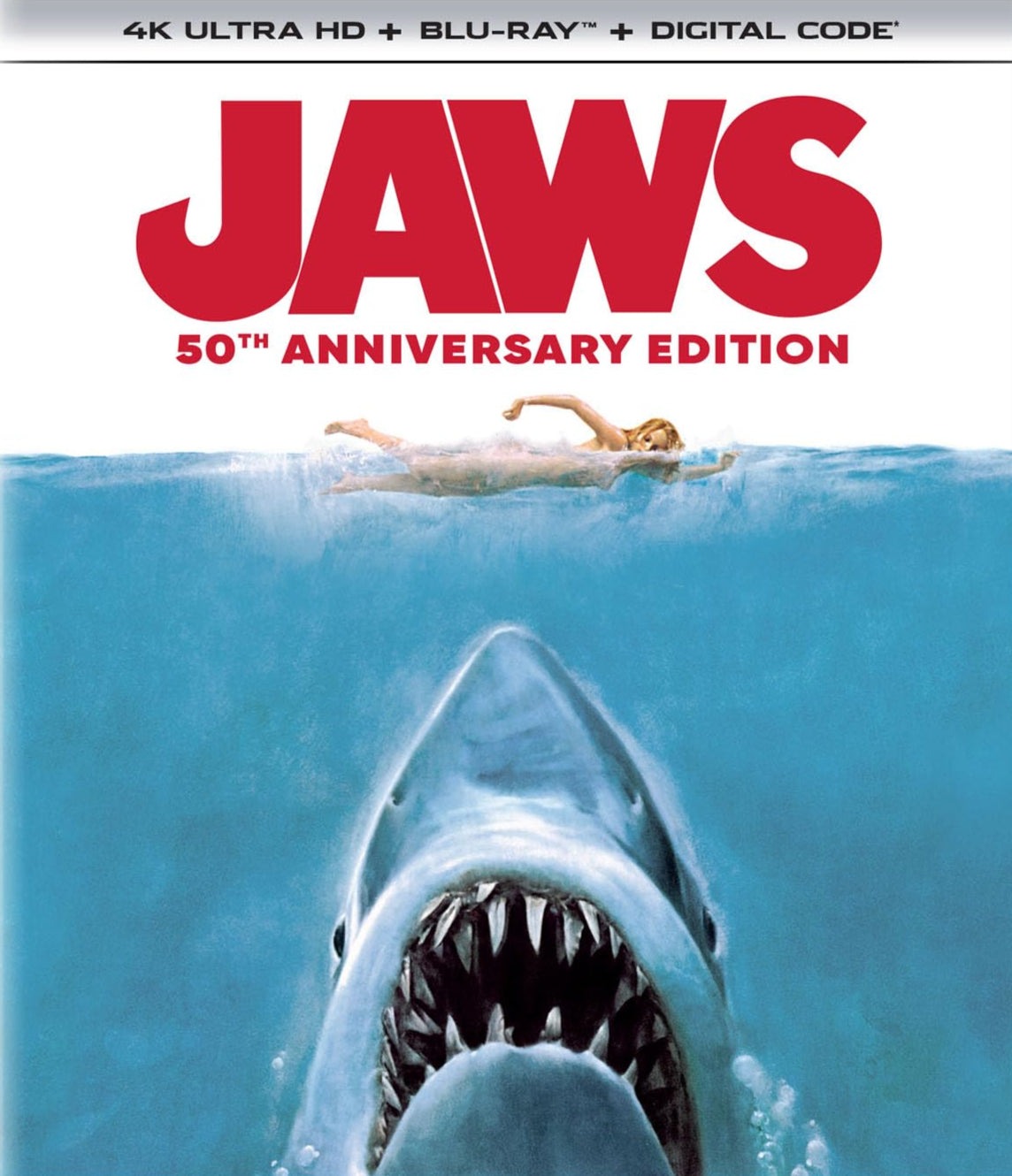 Did we need yet another home video release of Jaws? If you’re me, the answer is “Yes!,” especially since this 50th Anniversary Edition features a new 90-minute retrospective documentary, Jaws @ 50: The Definitive Inside Story. (I’m surprised they didn’t call it #Jaws @ 50.)