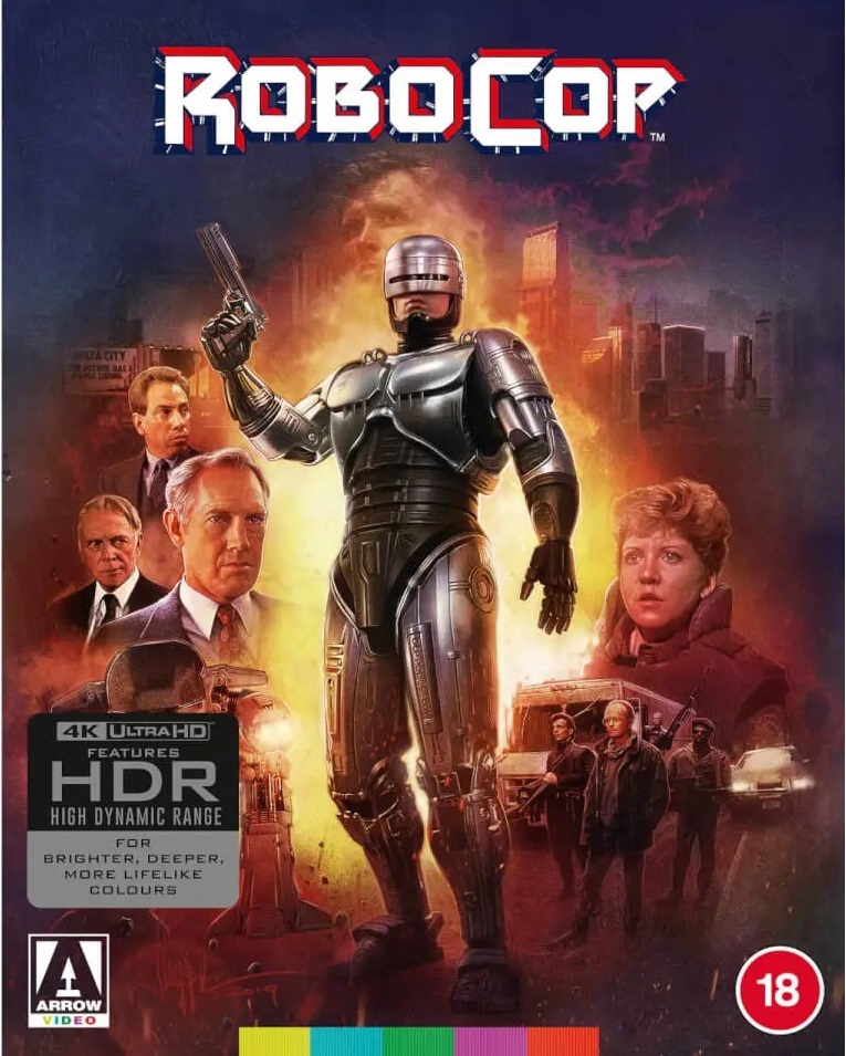 The last few years, Arrow has been issuing classic films on Blu-ray and then following up those releases with 4K editions that use the same 4K scan as the Blu-ray but don’t include high-def discs in the package. That trends continues with Paul Verhoeven’s RoboCop, which was issued on two-disc Blu-ray in 2019 and now comes to 4K in an identical edition packaged in a nice SteelBook case.