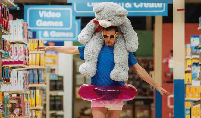 • A Good Place to Hide (9:22): I wondered if maybe the crew dressed the exterior of an abandoned store and built the Toys “R” Us interior on a sound stage, but, no, they really did take over an old Toys “R” Us store and recreate that early 2000s vibe inside and out. It was so convincing that people often stopped by while filming, thinking the chain was back in business.