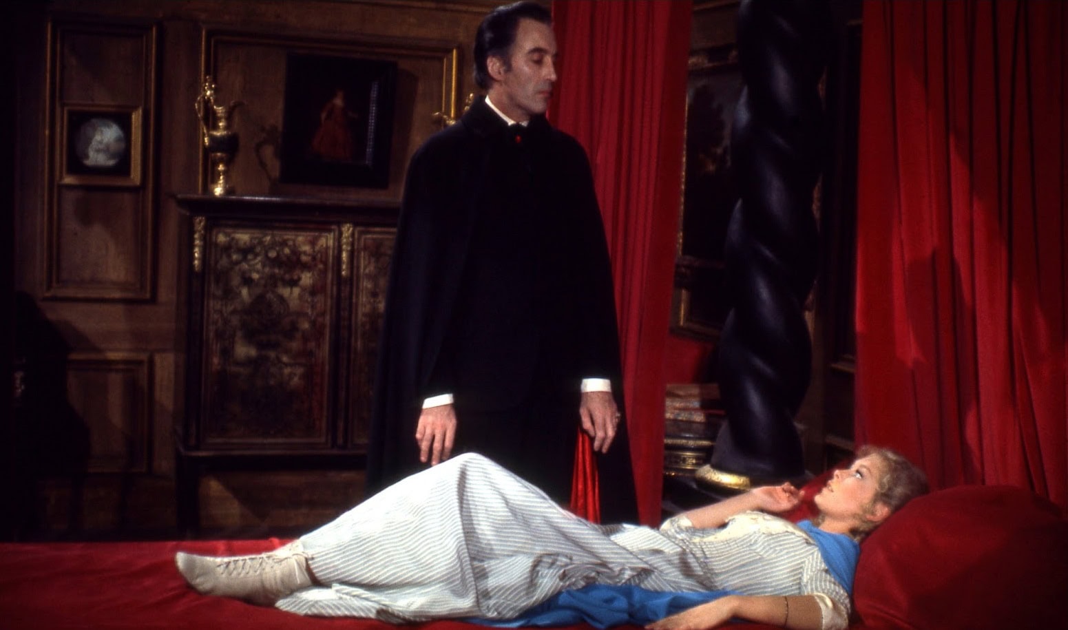 Fearing something terrible has happened, Paul’s brother Simon (Dennis Waterman) and his fiancé Sarah (Jenny Hanley) go looking for Paul and end up at Dracula’s castle, where the Count takes an immediate fancy to Sarah, as does Klove. However, Klove’s intentions are less sinister and he helps the couple try to escape, incurring the wrath of his master. When Simon returns with a priest, Klove is less helpful and the scene is set for a battle to wipe out Dracula’s evil once and for all.