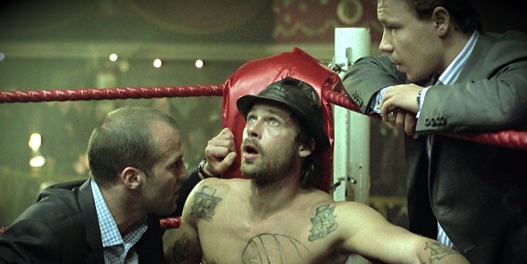 Snatch features two storylines that start out in parallel and cross into each other as the story progresses. In one, Statham plays Turkish, an underground boxing promoter whose attempt to fix an upcoming boxing match is upended by Mickey (Pitt), an Irish Traveller (known as a “pikey” among those who want to denigrate that nomadic group) who puts Turkish’s preferred boxer, Brick Top (Ford), in the hospital. Turkish uses Mickey in an upcoming fight instead, but the headstrong boxer refuses to take a fall, which gets both Brick Top and Turkish in trouble with members of London’s criminal world and pulls Mickey into their tangled web.
