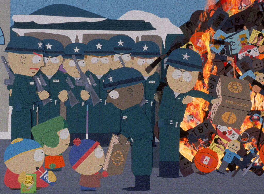 Parents and teachers are horrified by what the kids are saying, and, rather than deal with the situation themselves, they blame Canada. That, of course, leads to a declaration of war against Canada, the imminent execution of Terrance and Philip, and concentration camps for anyone in the United States who has any Canadian heritage in their backgrounds.