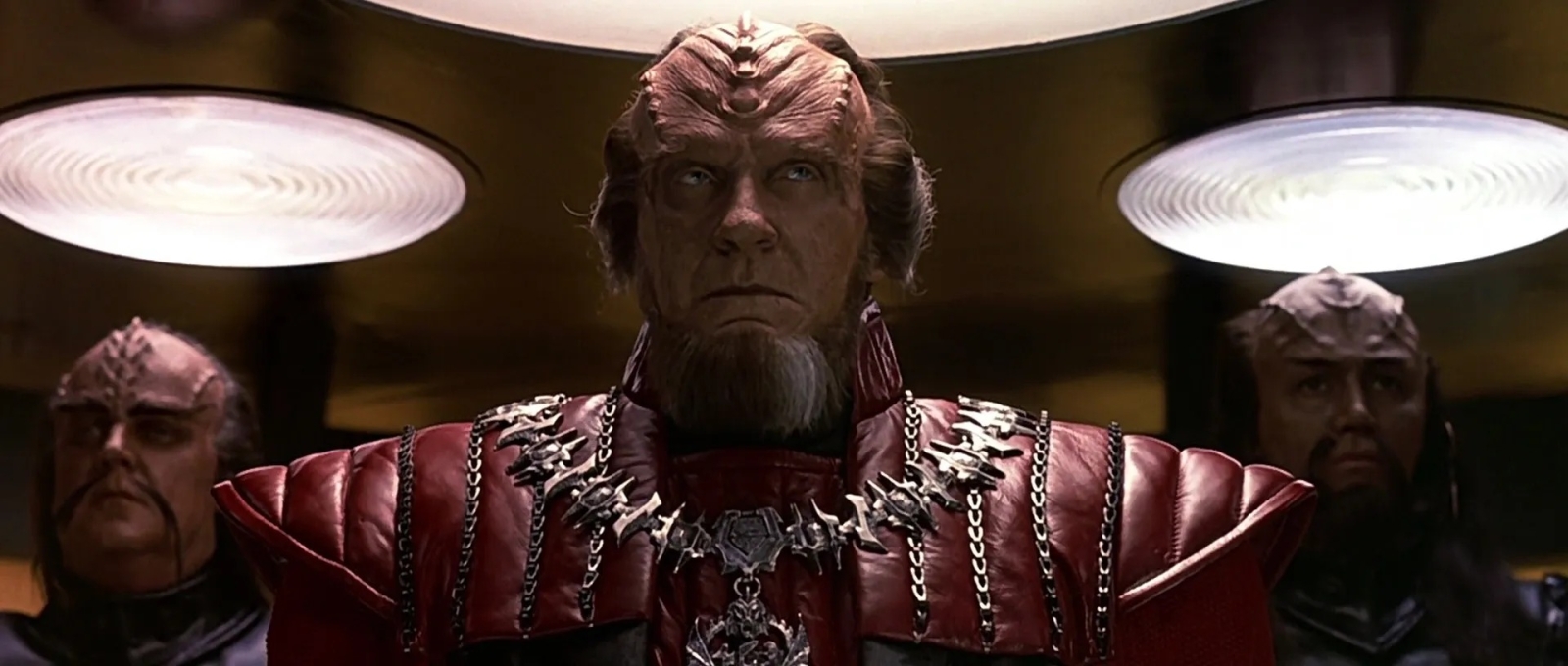 • The Star Trek Universe (76.75 minutes): This is a group of eight featurettes that cover everything from Nicholas Meyer’s thoughts on being part of Trek to a real world production of Shakespeare’s Hamlet in Klingon. (If you’re not aware, there’s a great line in the movie where Plummer’s character talks about reading Shakespeare “in the original Klingon.”) There’s also an in-depth look at the Klingons throughout the movies and TV shows, some fun trivia about Star Trek VI supporting cast members who popped up in other Trek productions, and a tour of the Undiscovered Country props found in the Paramount archives.