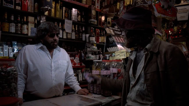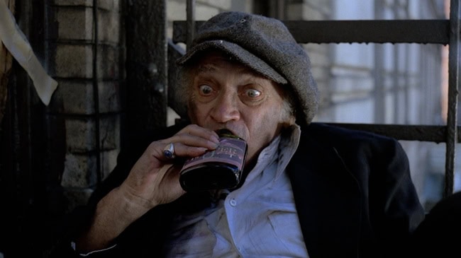 Although there is a central idea here – that of a liquor store owner discovering a box of bottles labelled as ‘Tenafly Viper’ and containing blue liquid which he sells to the various characters that wander into his shop – there are actually several smaller plots going on with the bottles of Viper being the connective tissue, but also the character of Fred (Mike Lackey), a vagrant who interacts with all of the misfits that dwell in this run-down part of the city and who just wants to drink his bottle of cheap $1 Viper but run-ins with the likes of Bronson (Vic Noto) – a deranged Vietnam vet suffering from PTSD who resides in a junk yard run by Frank (R.L. Ryan) – and tightly-wound cop Bill (Bill Chepil) are actually saving his life, while the rest of the drunks and winos appear to melt into puddles of blue and yellow liquid as soon as they touch the stuff.