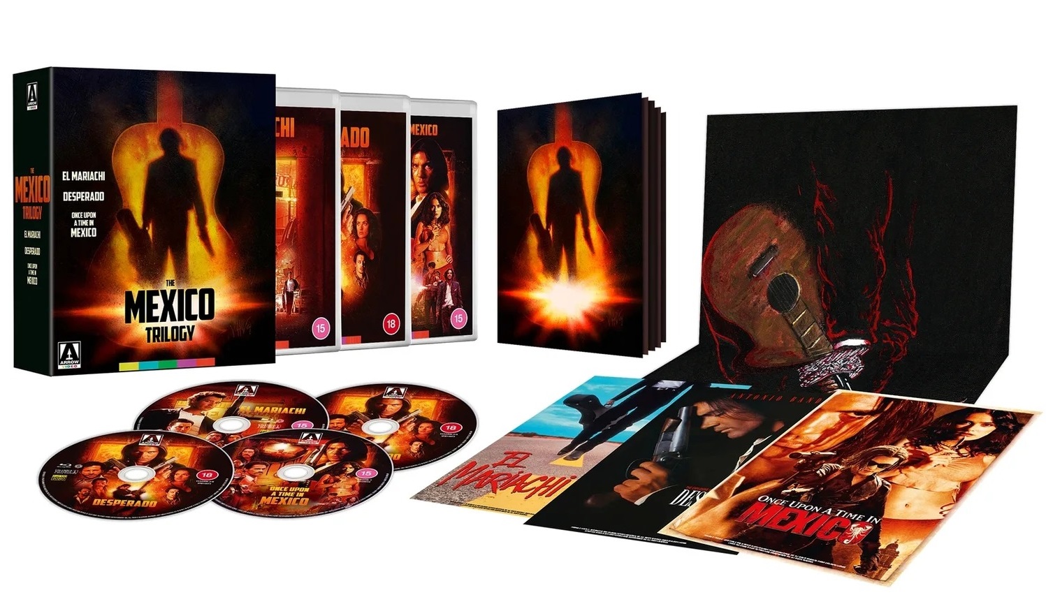 Rodriguez makes a point of saying that in an introduction to the two sequels to El Mariachi, Desperado and Once Upon a Time in Mexico, that are also included in this new set from Arrow Video. It’s billed as a 4K Ultra HD release, but Desperado is the only movie that actually gets the 4K treatment; the other two movies are only included as Blu-rays, a format where Desperado shows up too. (You can also buy Desperado as a standalone 4K Ultra HD release.)