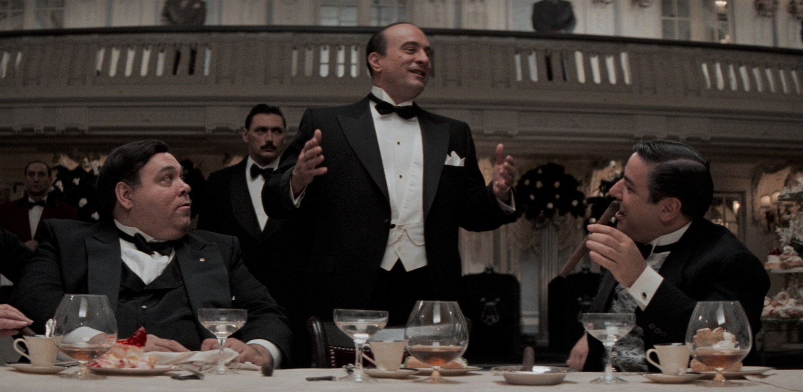 • The Script, the Cast (18.5 minutes): De Palma and producer Art Linson discuss how the project came about, which started as a revival of the old Untouchables TV show before pivoting to the version Mamet wrote. They also get into the casting, with an interesting tidbit about how they almost went with Bob Hoskins in the role of Capone. The members of the cast show up in archival on-set interviews.