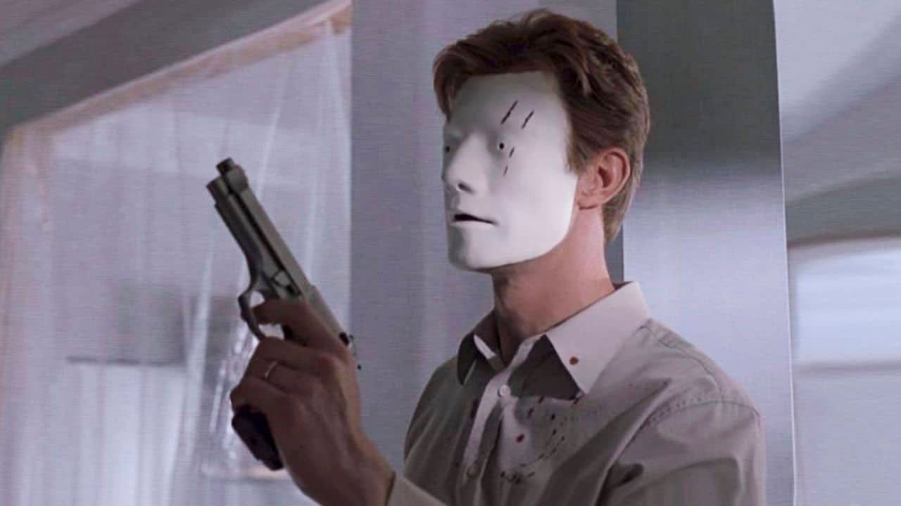 Henry’s life is basically a train wreck and insignificant, triggering a cruel metaphor one day when he looks at the mirror: his face is entirely sealed in a featureless, white “mask” that becomes part of the skin. This leads to his drastic personality changes, prompting him to commit a series of murders. Romero’s unique blend of dark humor and grisly horror violence pairs well with his signature touches on a biting social commentary.