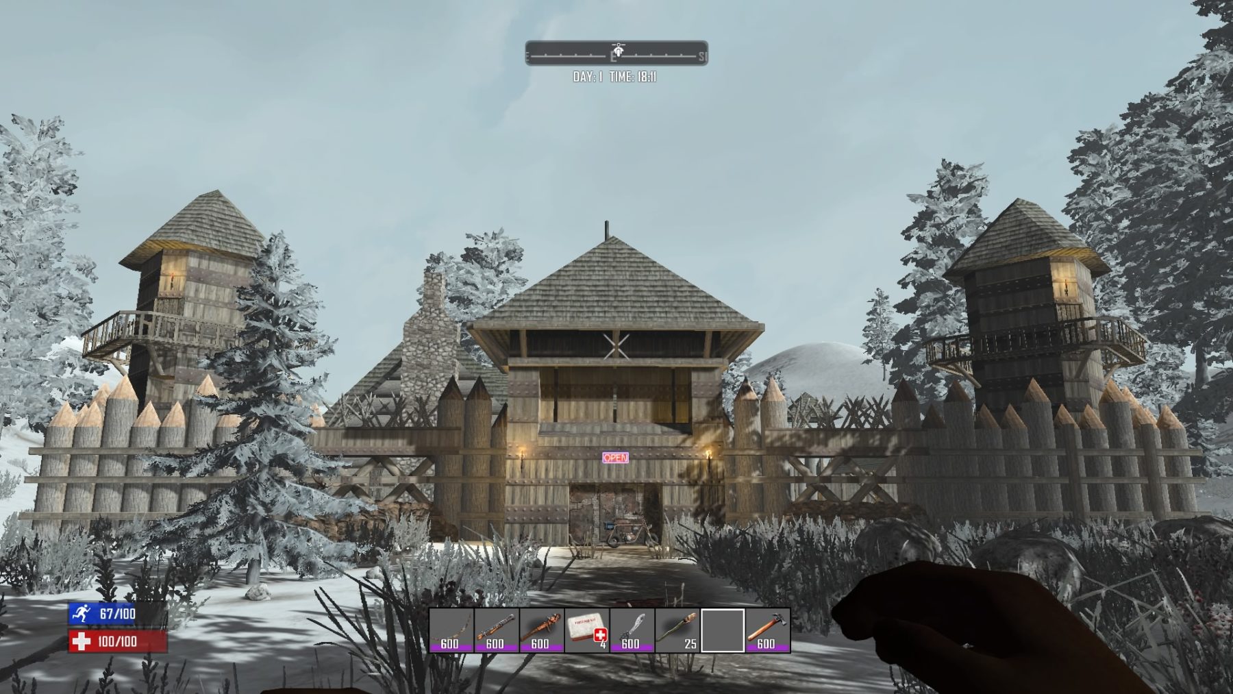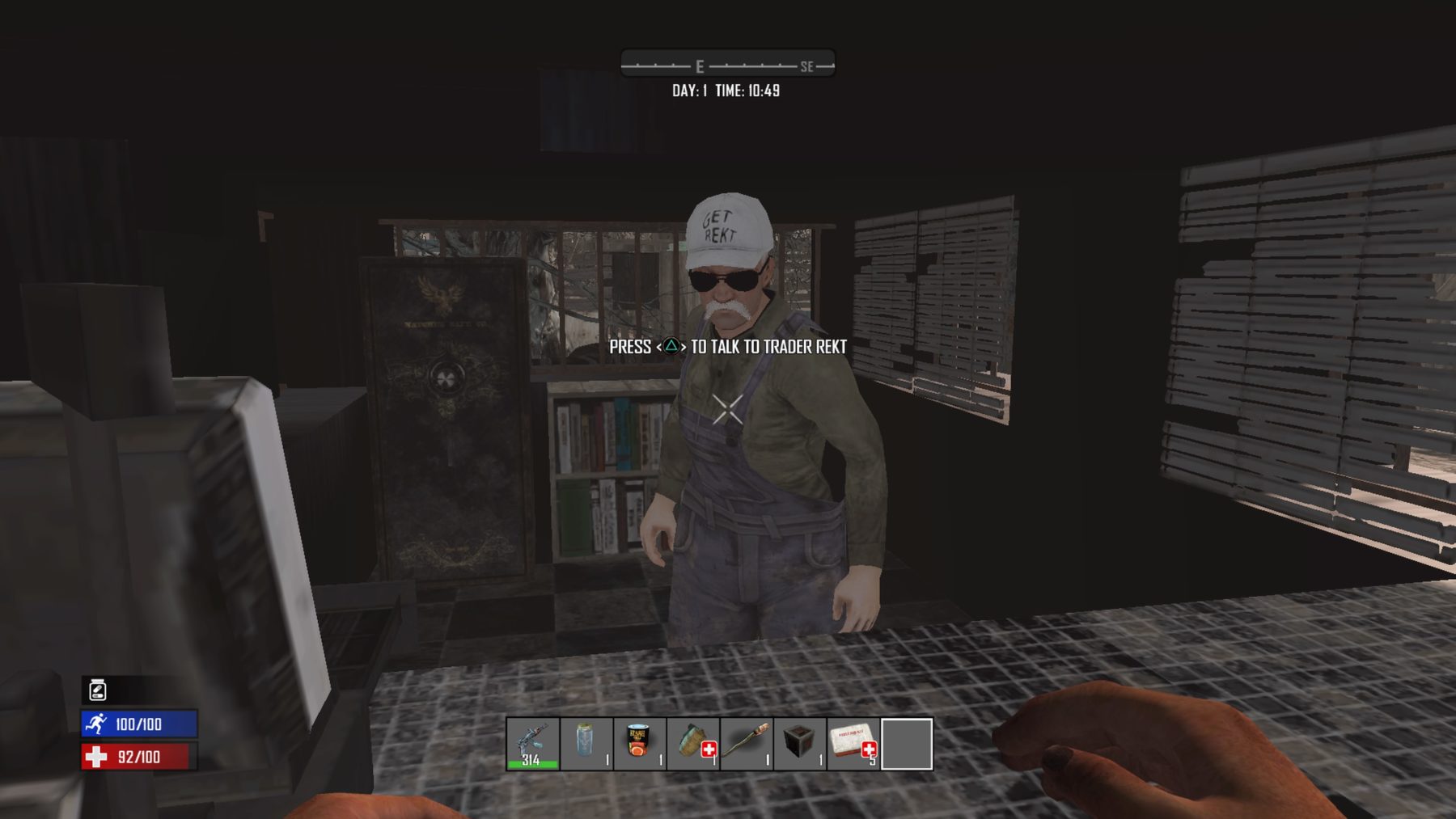 Traders have moved into zombie country and set up shop! They carry a variety of products, some of which you cannot get anywhere else in the game. They live in indestructible compounds that are open during daylight hours (6:05 – 21:50) and closed after dark. Players loitering inside the compound after close of business will be kicked out (aka automatically teleported outside of the compound).