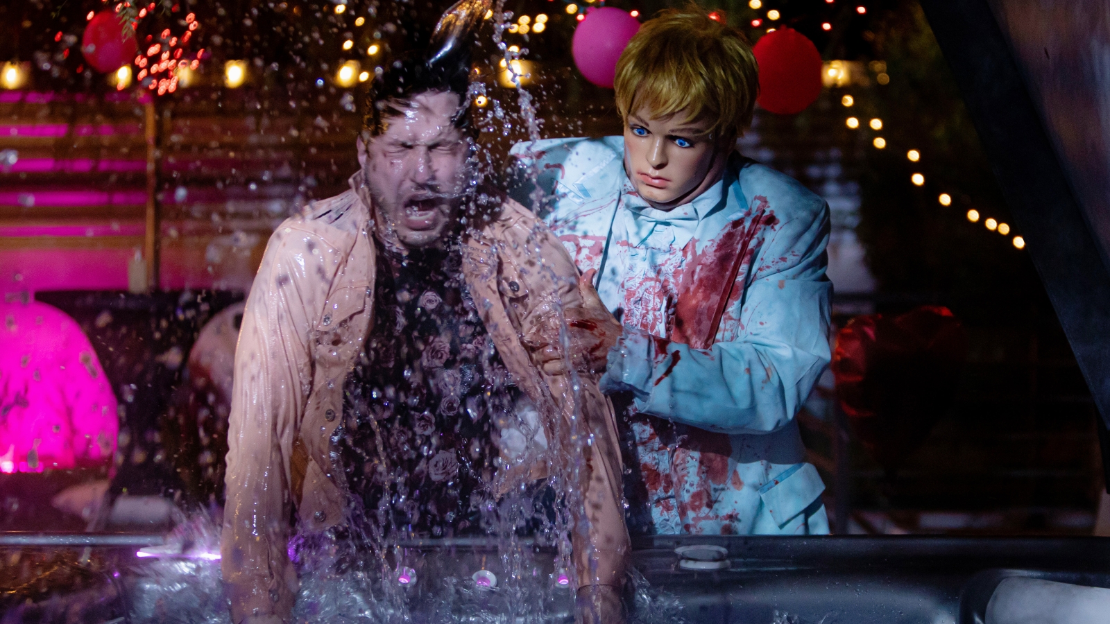 Suffering from blindness after a botched laser surgery, Hollywood actress Faye is abducted from her hillside estate by a masked lunatic named Pretty Boy. He drags her to a nearby home, where several decadent swingers are throwing a retro Valentine’s Day party. As the partiers meet up one by one with Pretty Boy and his machete, Faye awakens and struggles to plot her escape…