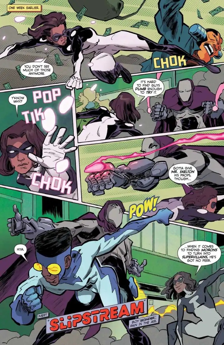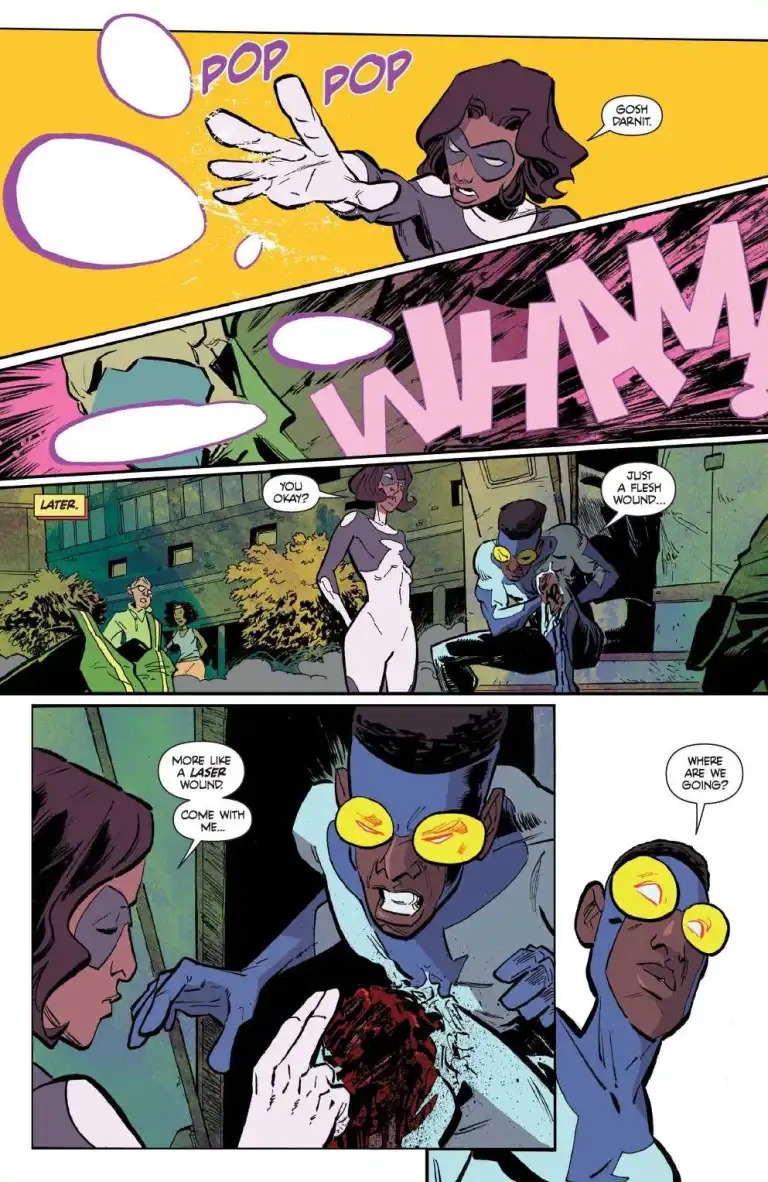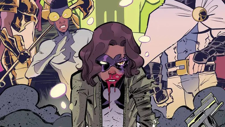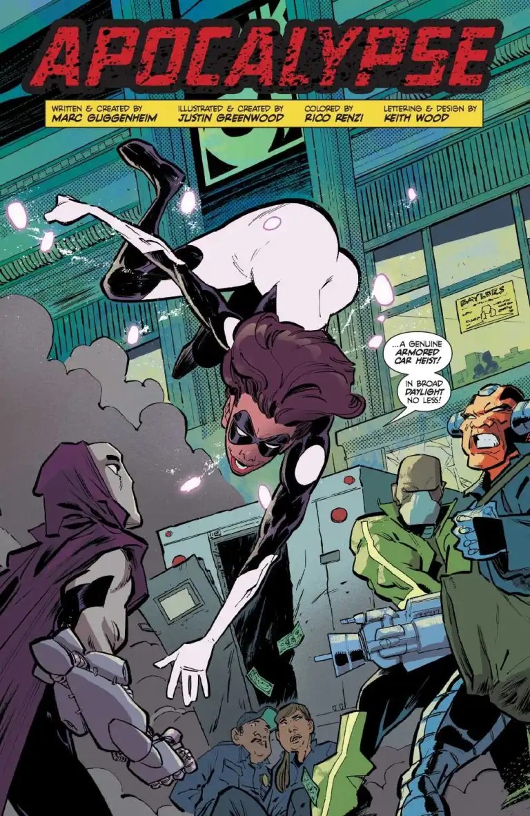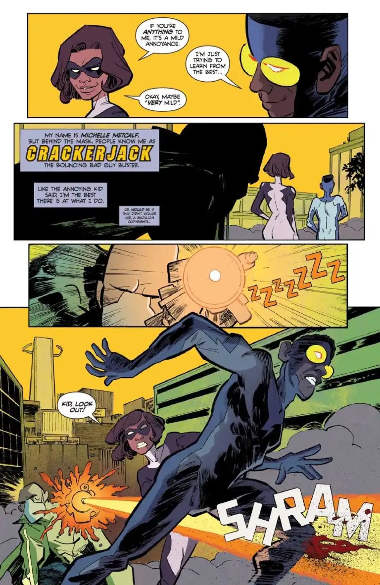 “From MARC GUGGENHEIM (Arrow, X-Men Gold, Star Wars: Revelations) and JUSTIN GREENWOOD (THE OLD GUARD: TALES THROUGH TIME, Future State: Gotham), the team who brought you the critically acclaimed series Resurrection, comes a brand-new superhero universe. Michelle Metcalf is the world’s most happy-go-lucky hero, CRACKERJACK, until tragedy forces her to cross the line from hero to vigilante”.