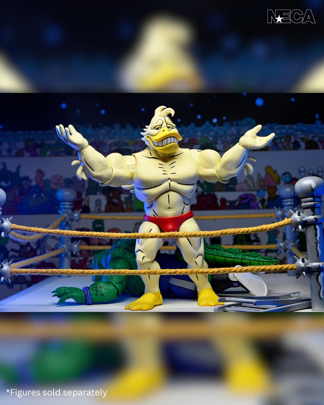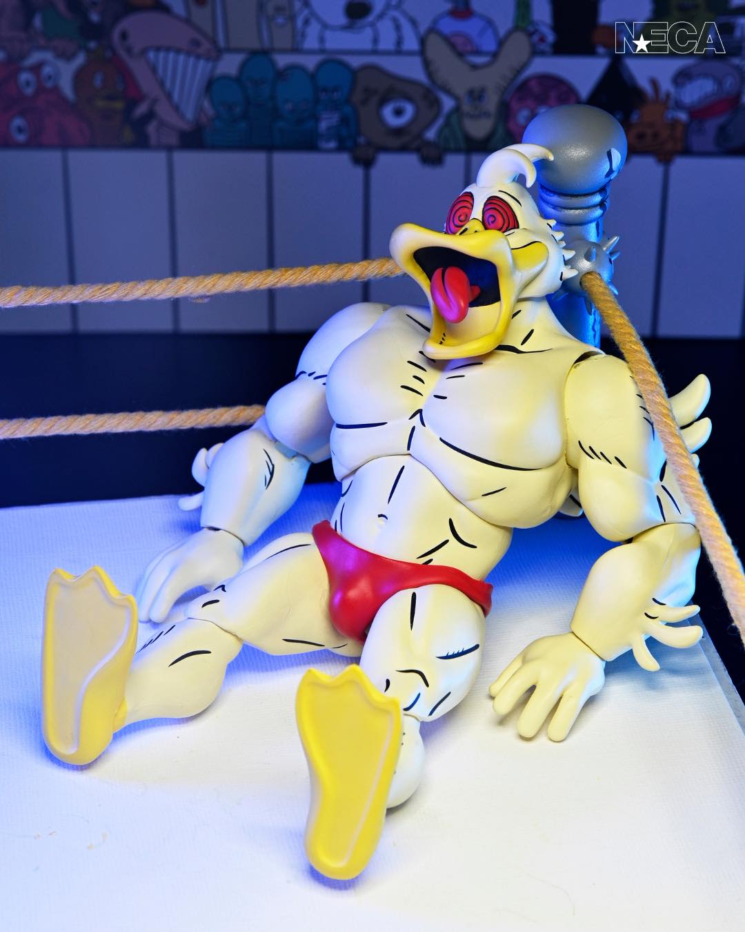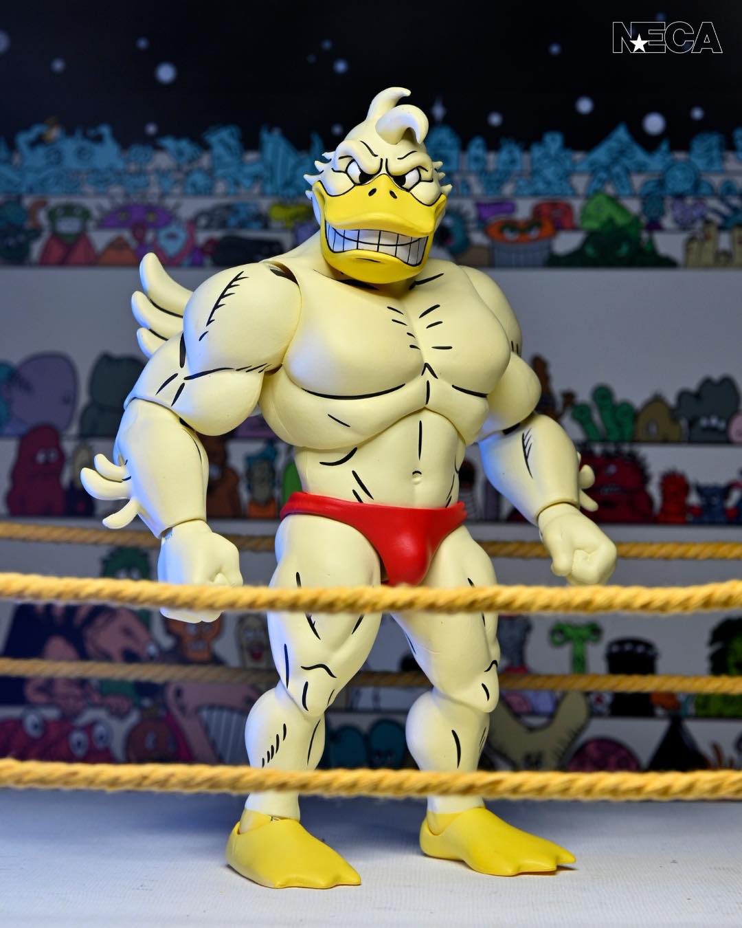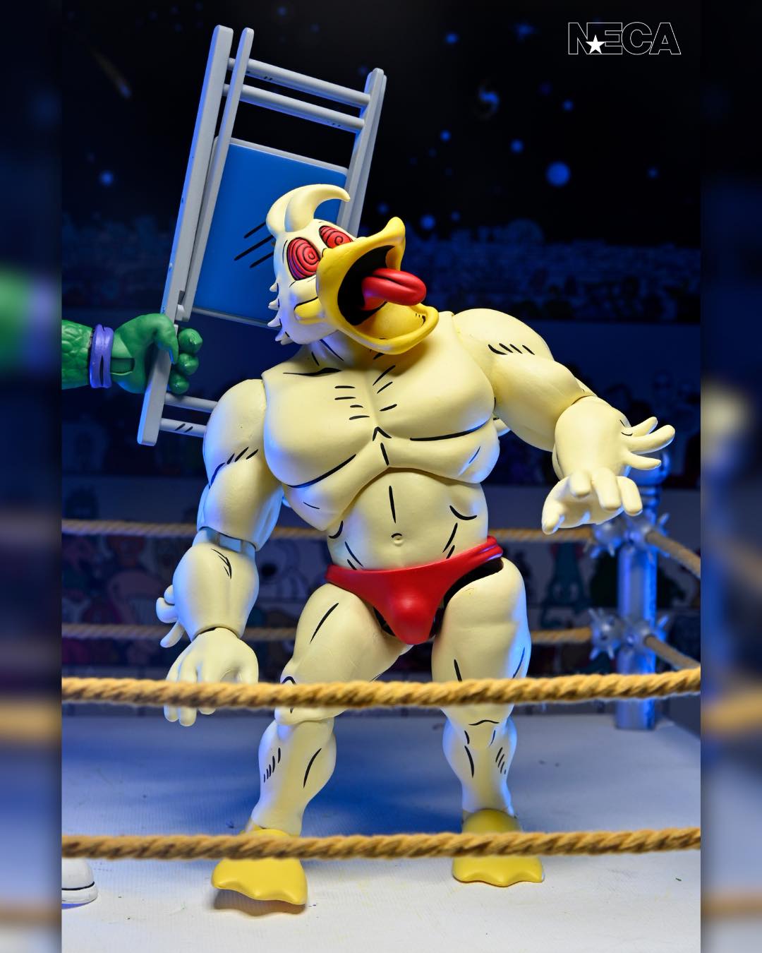 As seen in Eastman and Laird’s Teenage Mutant Ninja Turtles Adventures comic book series from Archie Comics! NECA is proud to present Stump Wrestling’s mightiest mallard: Ace Duck! This 7-inch scale action figure includes multiple heads and hands for all types of action in and out of the ring. Comes in collector-friendly packaging with artwork by original TMNT Adventures artist Ken Mitchroney.