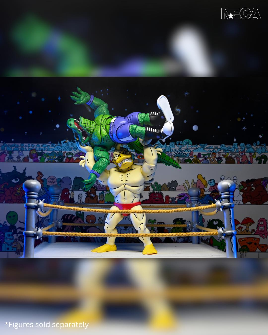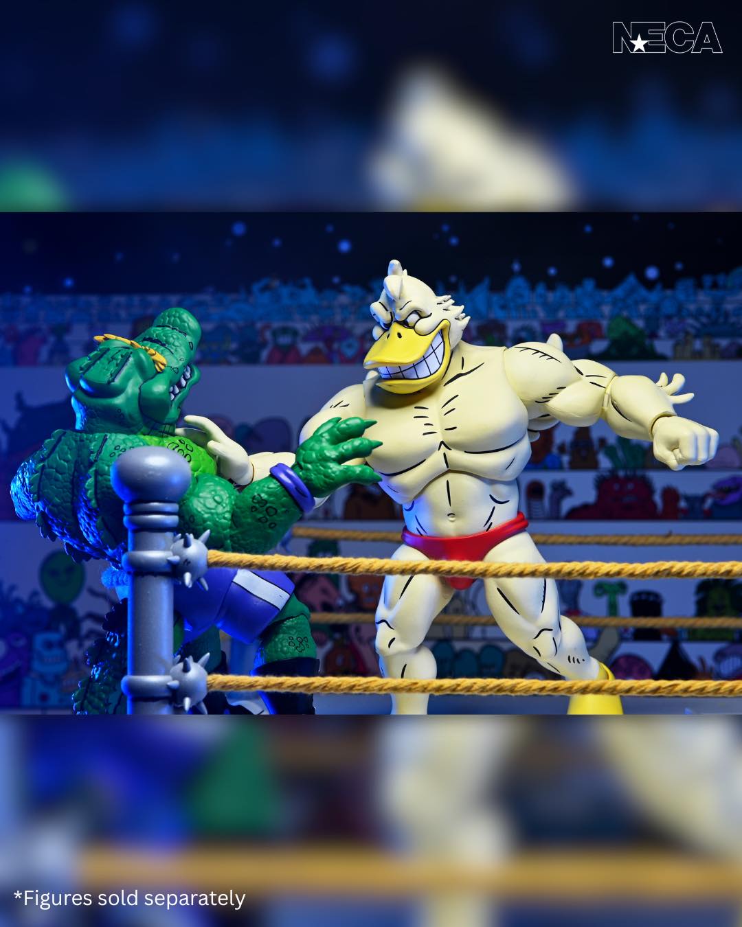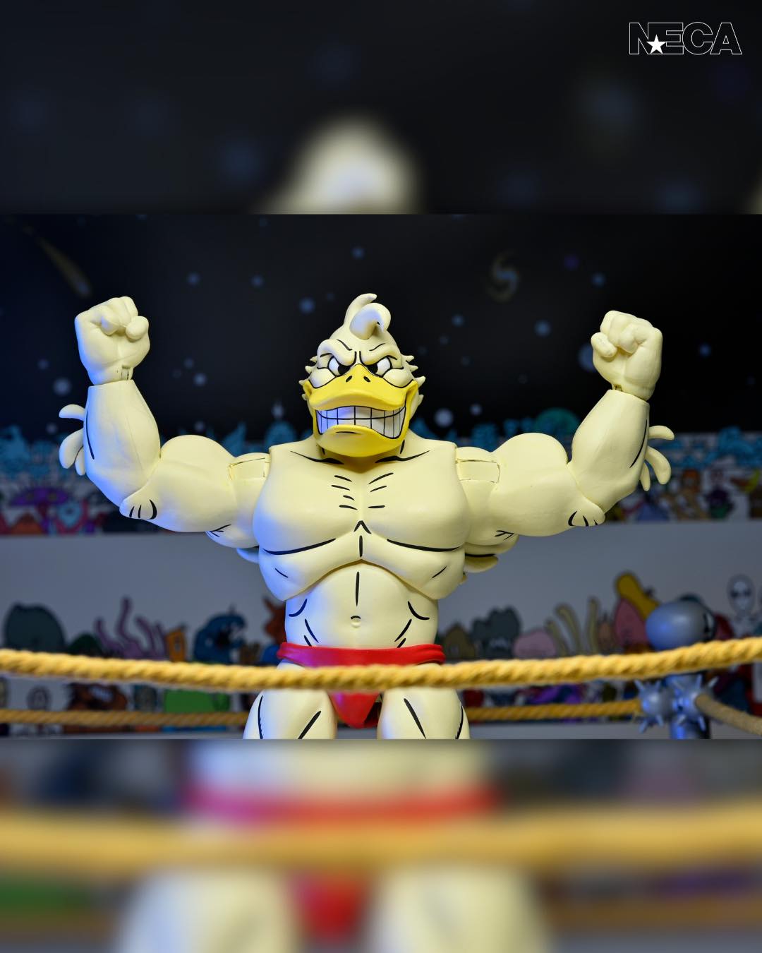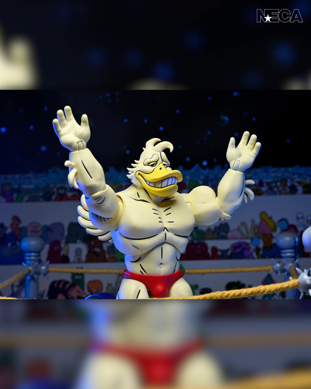 As seen in Eastman and Laird’s Teenage Mutant Ninja Turtles Adventures comic book series from Archie Comics! NECA is proud to present Stump Wrestling’s mightiest mallard: Ace Duck! This 7-inch scale action figure includes multiple heads and hands for all types of action in and out of the ring. Comes in collector-friendly packaging with artwork by original TMNT Adventures artist Ken Mitchroney.