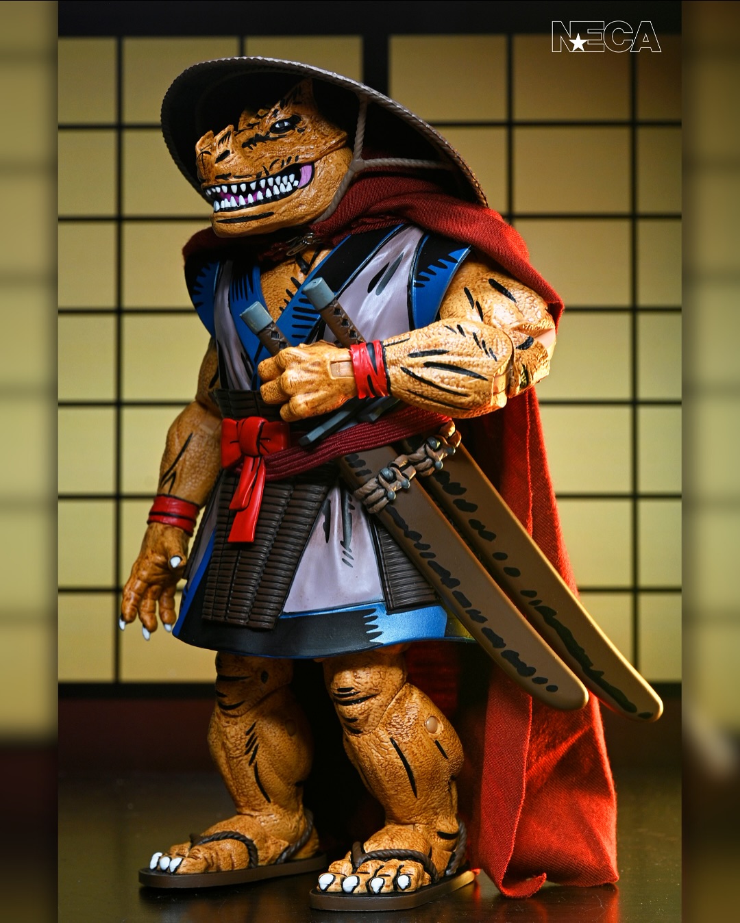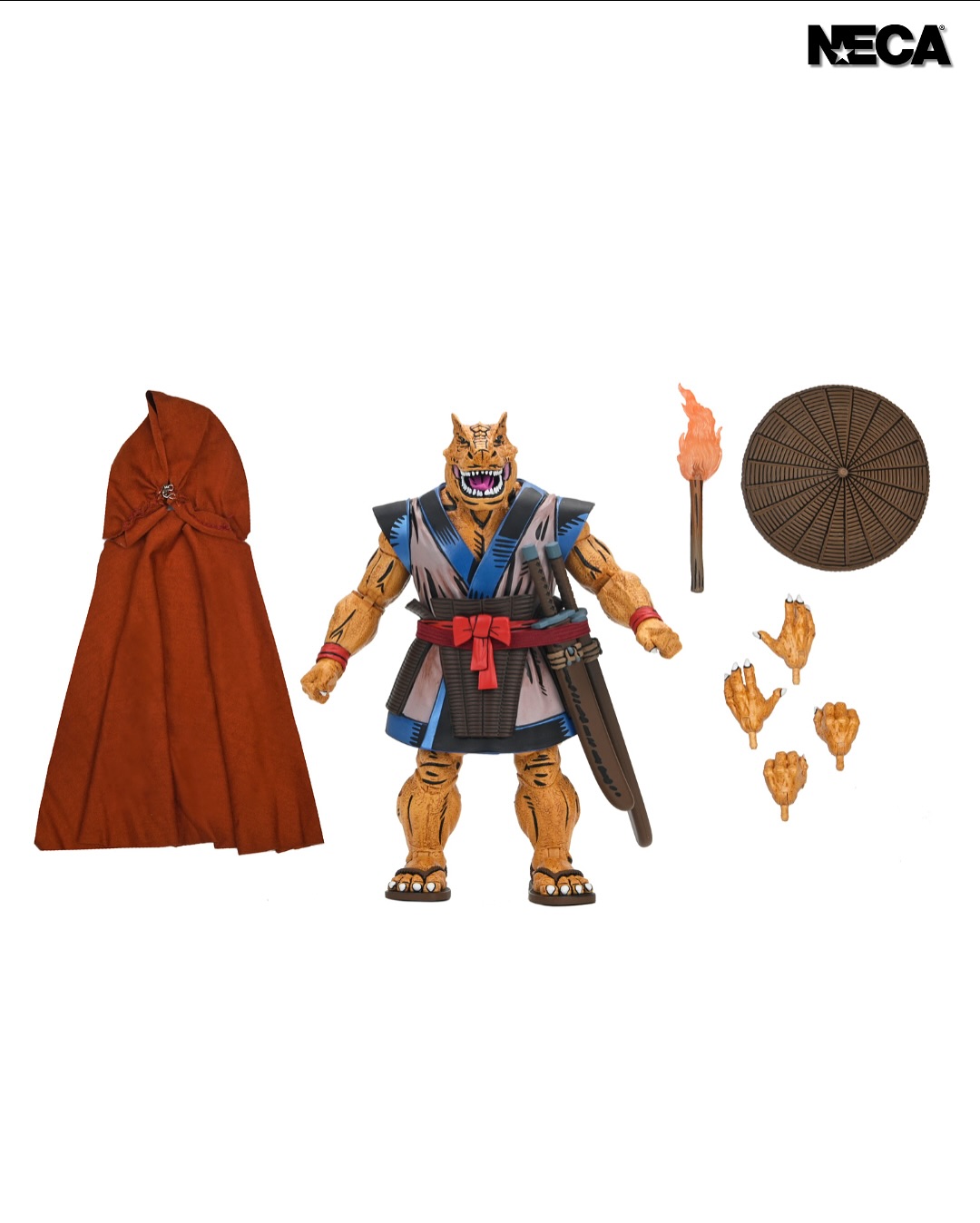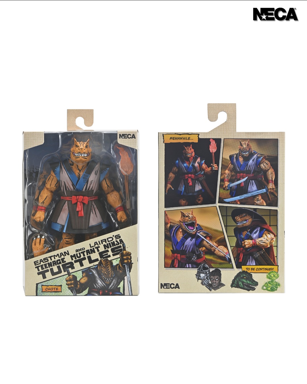 As seen in Eastman & Laird’s original Teenage Mutant Ninja Turtles comics from Mirage Studios! Chote, the mysterious, dinosaur-like creature and skilled samurai warrior, is ready to join your collection. Standing in 7-inch scale, this NECA action figure features a soft goods cape, removable hat, torch, all-new weapons, and even a hinged jaw! Comes in collector-friendly packaging with artwork by Kevin Eastman and Michael Dooney.