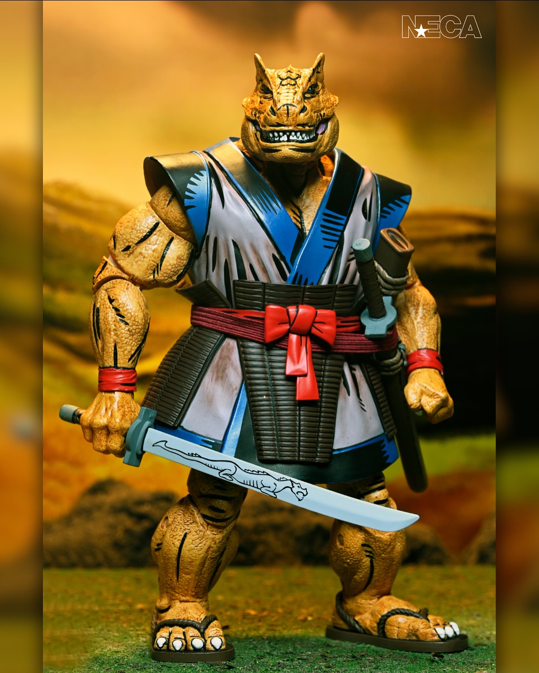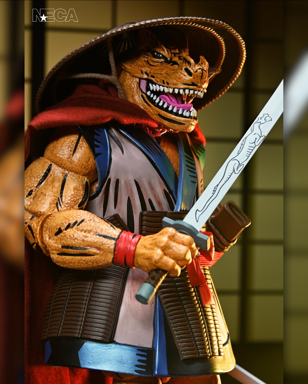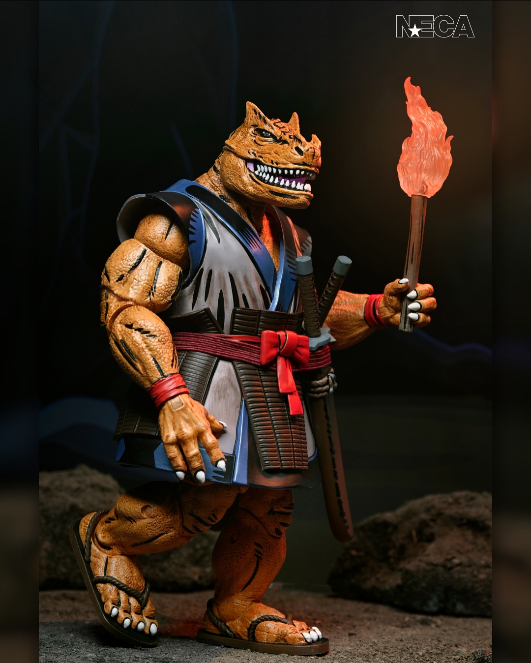 As seen in Eastman & Laird’s original Teenage Mutant Ninja Turtles comics from Mirage Studios! Chote, the mysterious, dinosaur-like creature and skilled samurai warrior, is ready to join your collection. Standing in 7-inch scale, this NECA action figure features a soft goods cape, removable hat, torch, all-new weapons, and even a hinged jaw! Comes in collector-friendly packaging with artwork by Kevin Eastman and Michael Dooney.