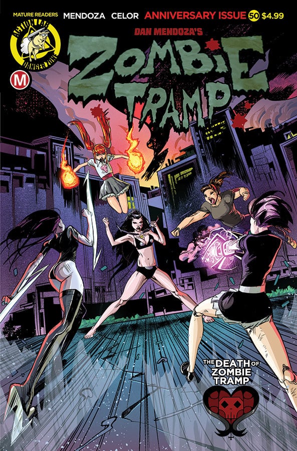 Action Lab is offering two versions of Zombie Tramp #50 – a normal anniversary issue at the usual page count (but with an extra-length story), and a double-sized 64 page deluxe edition that features all the regular content plus an exclusive cover and backup story from Zombie Tramp creator, Dan Mendoza!