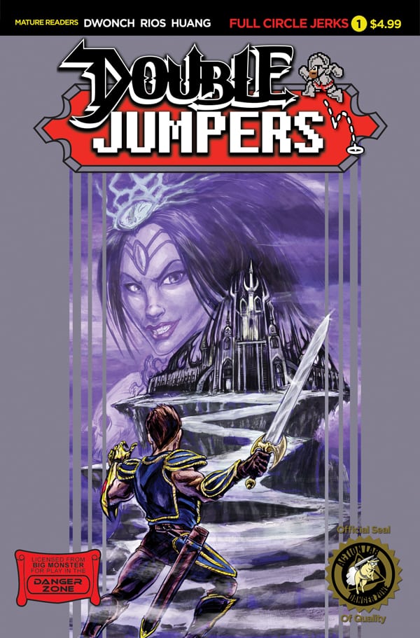 “I’ve always known I’d be back for more with Double Jumpers. It’s pretty apparent from the last page of the first volume,” said creator Dave Dwonch. “With that first series I was aiming to offend everyone, but it was so ridiculous that it sort of became this sleeper hit. Tonally this one hits all the same comedy beats, but while the first volume was about failure, this one’s about redemption. Video game culture is a very strange, volatile thing, and we really tap into some of the greater divides present within it. It’s going to be a crazy ride, trust me.”
