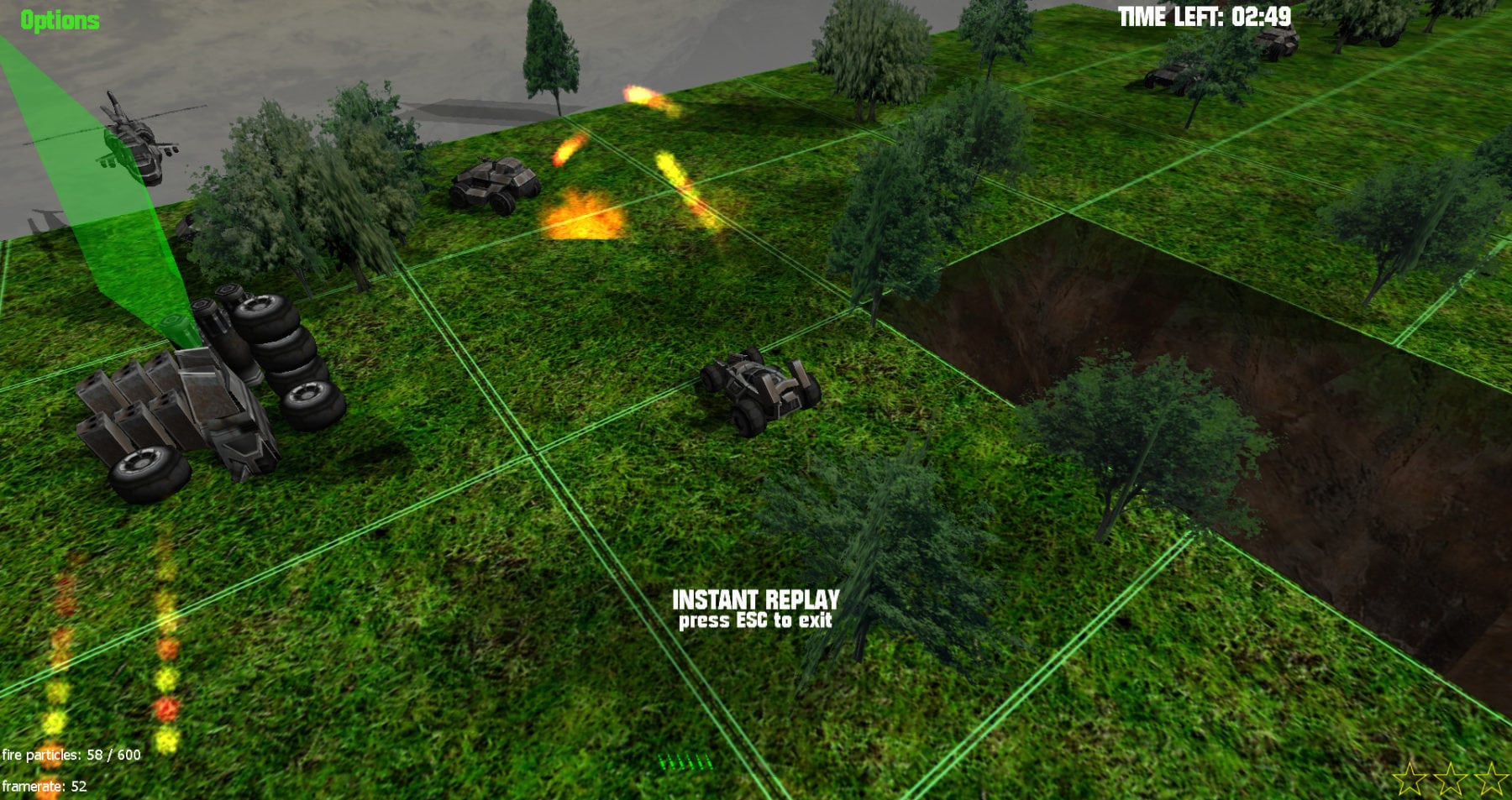 The aim of The General Retreats is a very simple one, race the vehicle across the map to reach the goal before you get blasted by enemy fire. However, timing is critical and every turn made puts the general at more risk. Players will need to steer their vehicle through several tutorials and ten maps avoiding deadly hazards such as bombs, artillery, attack helicopters and enemy tanks. If you master a map with one vehicle there are 4 other unique vehicles to challenge your driving skills.