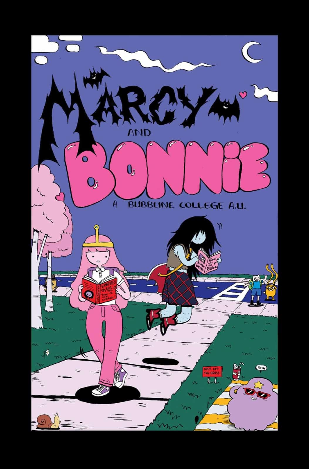 Experience all the fun of college (and none of the stress) in this giant-sized comic spectacular starring Princess Bubblegum and Marceline! What, do you think Ice King should get to have all the fun?! Heck nah! Fanfics are cool and all, but you know what’s even cooler? Peering into alternate universes—and Prismo’s got the perfect one in mind . . . Princess Bubblegum has just started school at Ooo University (double majoring in chemistry and princess, of course!). But between difficult roommates, overreaching bodyguards, assassination attempts, and—more importantly—a full class schedule, will Bubblegum be able to survive her first year in college?! With the help of one super-cool, super-mysterious flying vampire who she is mayybeee falling in love with, it shouldn’t be all that hard. Turns out Marceline and Bubblegum are made for each other in any universe!