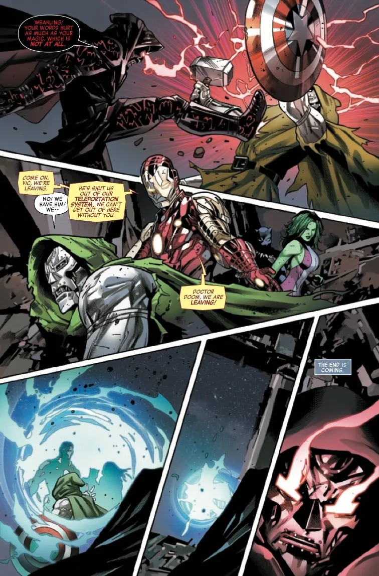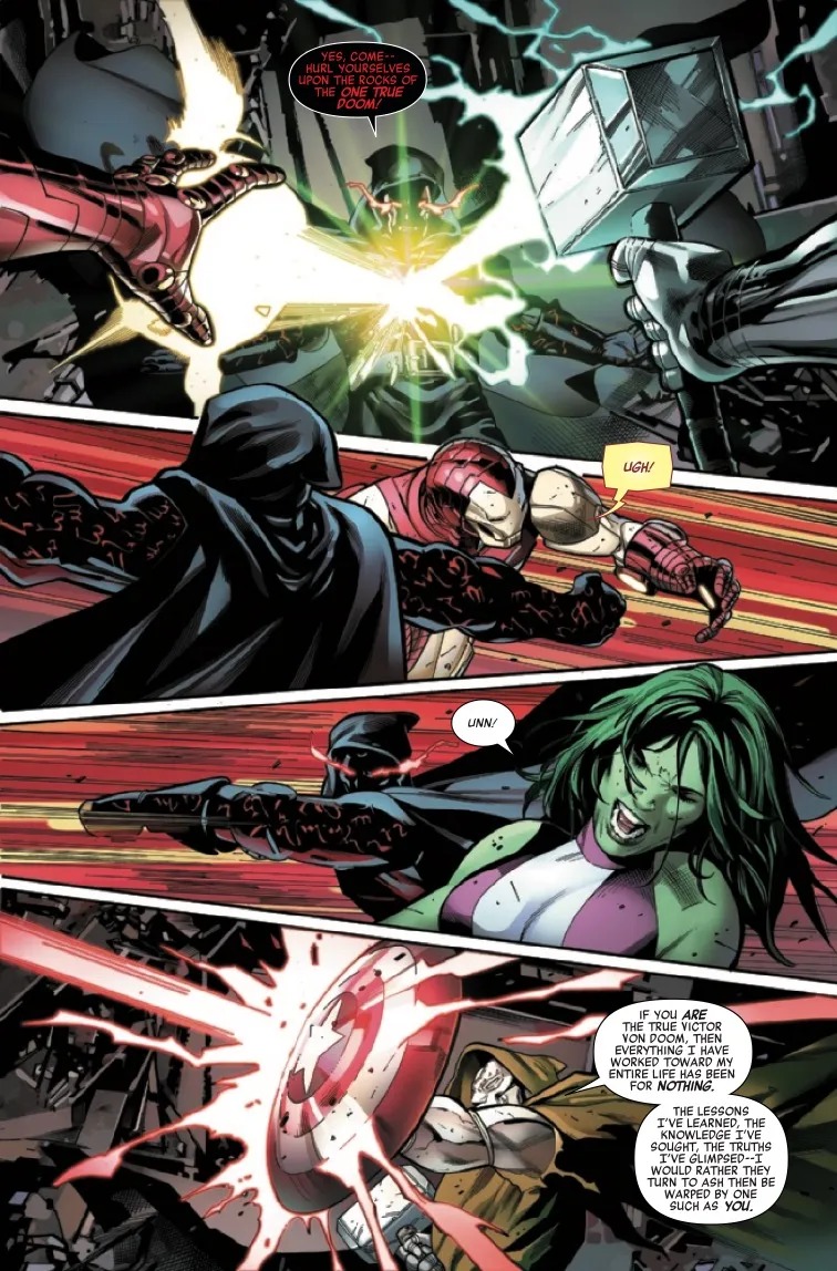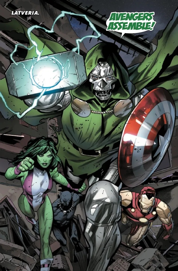 The Avengers are on their knees, in chains and at the mercy of Doctor Doom. Their only hope lies in the one man with the strength, honor and sheer decency to possibly stand against the oncoming darkness: the hero the world knows as…Doctor Doom? Plunge into the action from page one and hold on for dear life, gentle reader — this tale doesn’t let up for a moment!