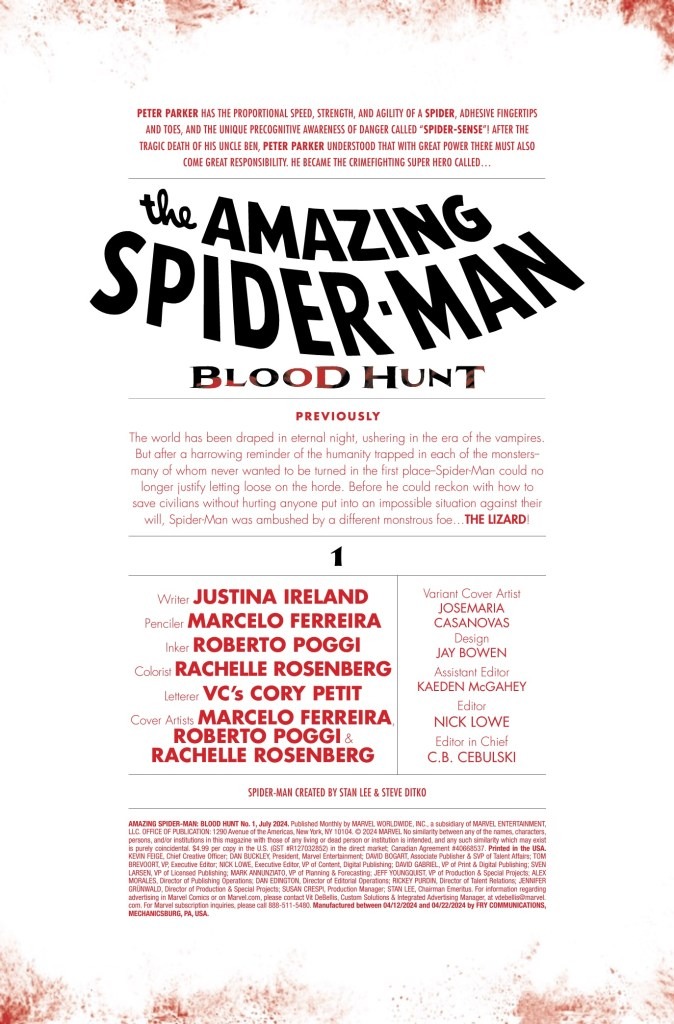 Comic Book Preview – Amazing Spider-Man: Blood Hunt #1