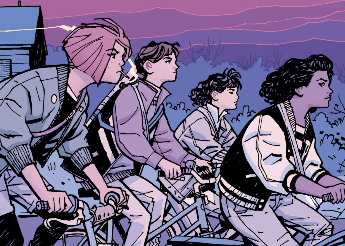 Published by Image Comics, Paper Girls follows “four young girls who, while out delivering papers on the morning after Halloween in 1988, become unwittingly caught in a conflict between warring factions of time-travelers, sending them on an adventure through time that will save the world. As they travel between our present, the past, and the future — they encounter future versions of themselves and now must choose to embrace or reject their fate.”