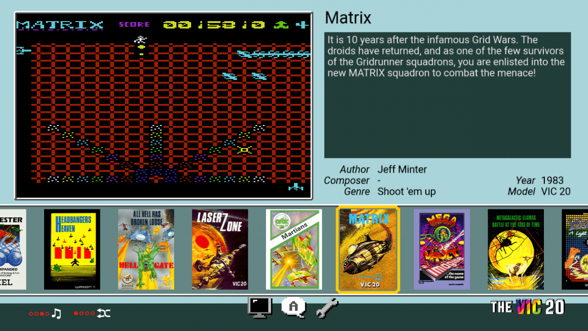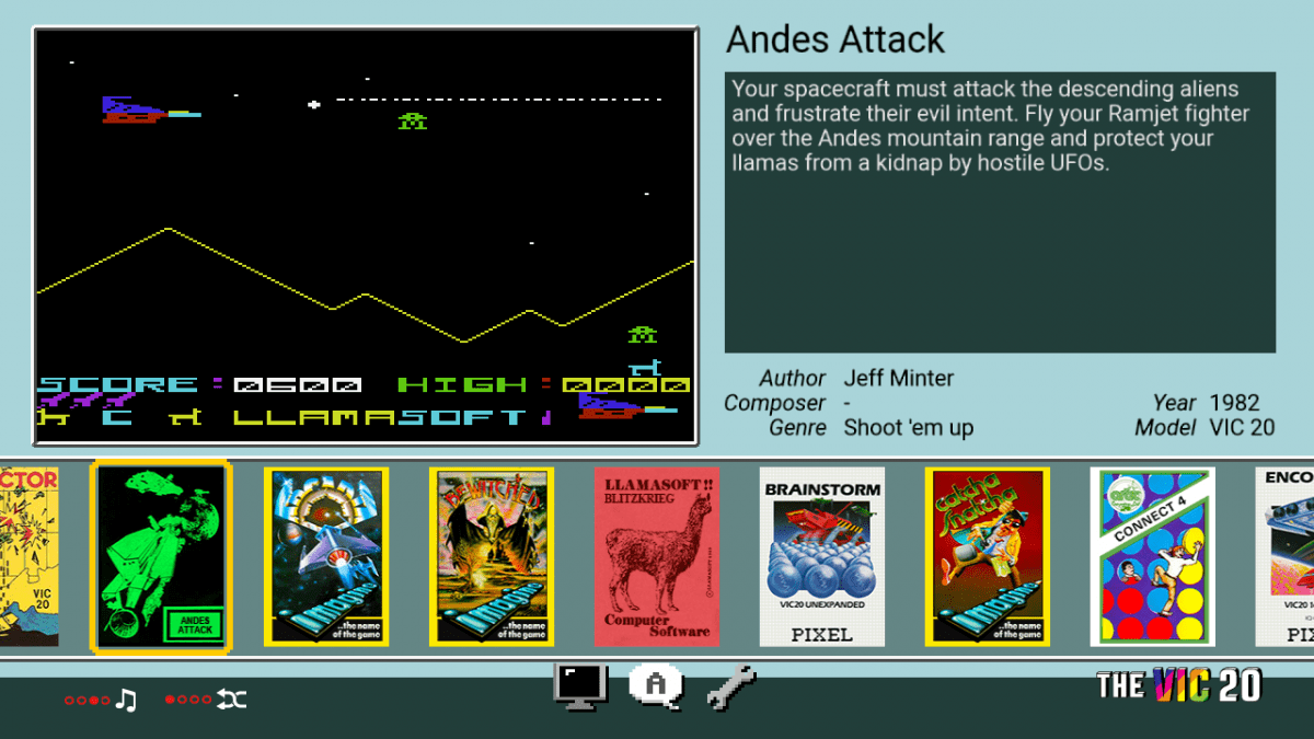 THEVIC20 will be able to boot straight into the original VIC-20 BASIC, C64 BASIC moods or can be switched straight into the Games Carousel where players will be able to play one of the 64 built in games. The selection of games include: