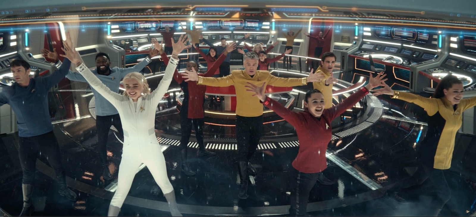 Strange New Worlds‘ ‘Subspace Rhapsody’ saw the Enterprise come into contact with an anomaly that made everyone sing out their feelings in grand Broadway-like musical numbers. The only way to stop it was to play along, resulting in the crew and even those in other parts of the galaxy engaging in song and dance. On his reaction to the musical episode, Peck had only one word: “Shock.”