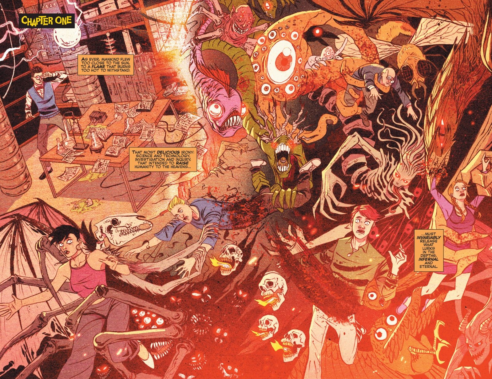 In a world overrun with demons, Archie Andrews is on a quest to cleanse Riverdale of all wicked-kind. Harnessing the destructive power of a captive fiend, he will have to destroy corrupted and possessed versions of the people closest to him. Questioning his own morality and forced to make difficult sacrifices, are Archie’s efforts truly good, or the work of pure evil? Traverse the most horrifying version of Riverdale yet in the first Archie Premium Event.
