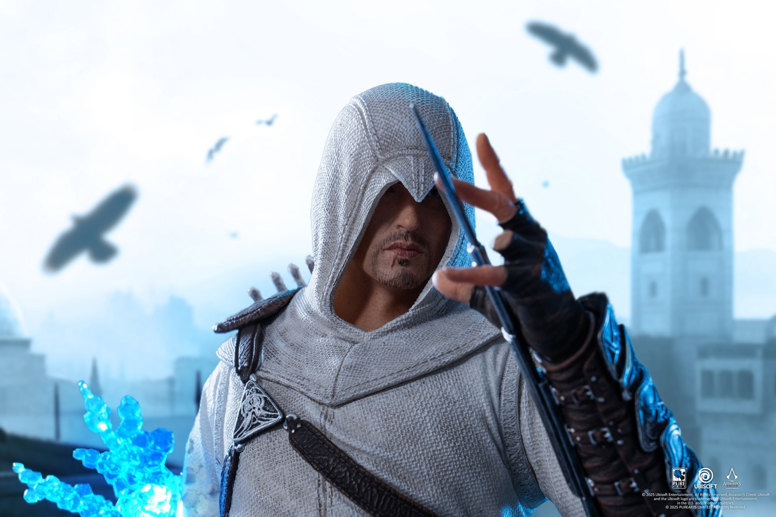 The quintessential PureArts animus-LED effect representing the bridge between past and present materializes from Altair’s left side. Standing at 11 inches tall, the Animus Altair 1:8 Scale Statue is the perfect size for any Assassin’s Creed fans’ set up!
