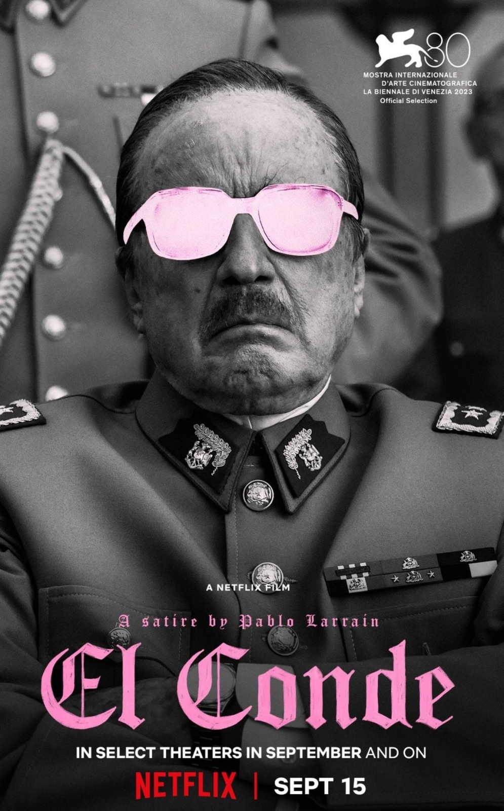 Netflix has debuted the first trailer, poster and images for director Pablo Larraín’s satirical horror-comedy El Conde, which is set to make its premiere at the 80th Venice International Film Festival this September.