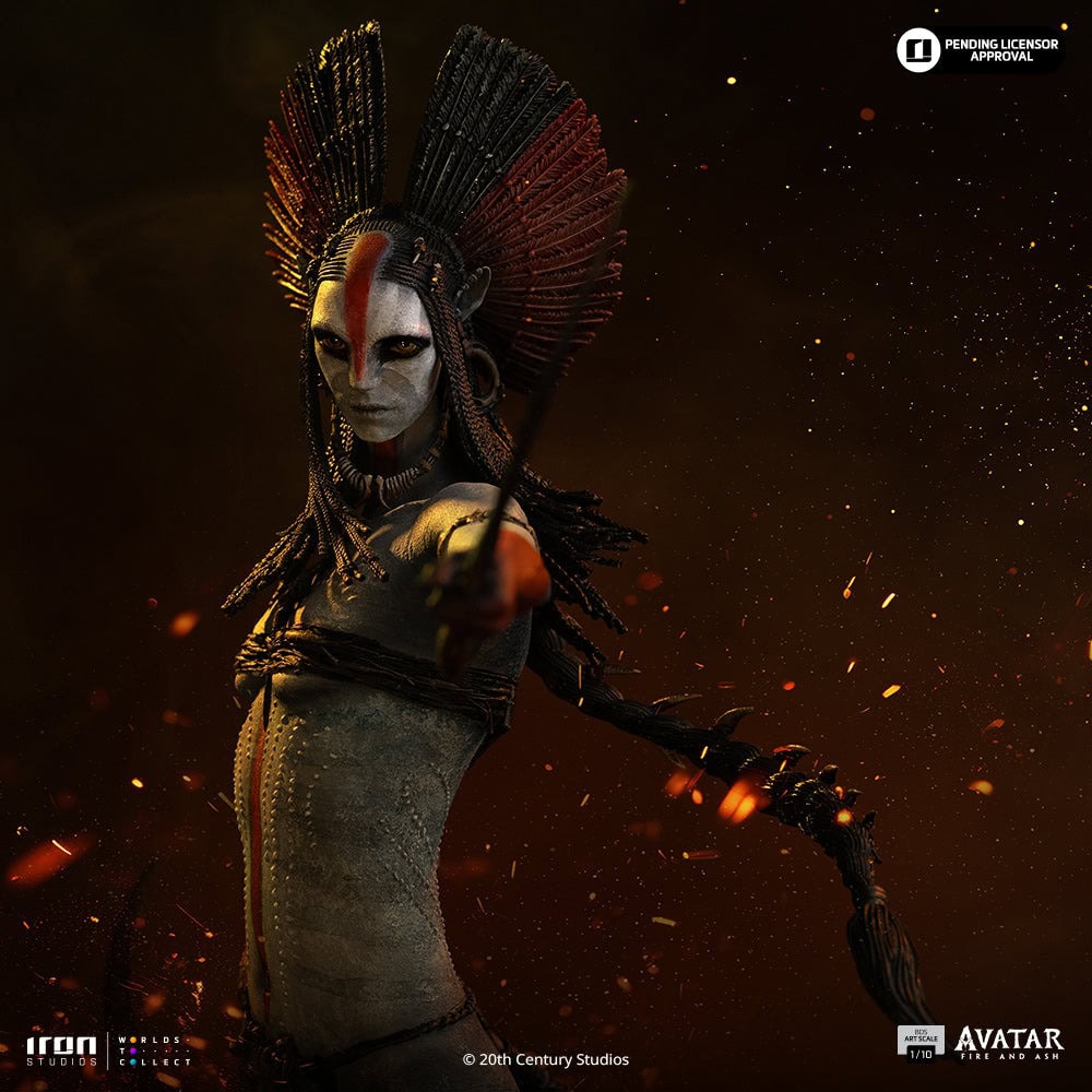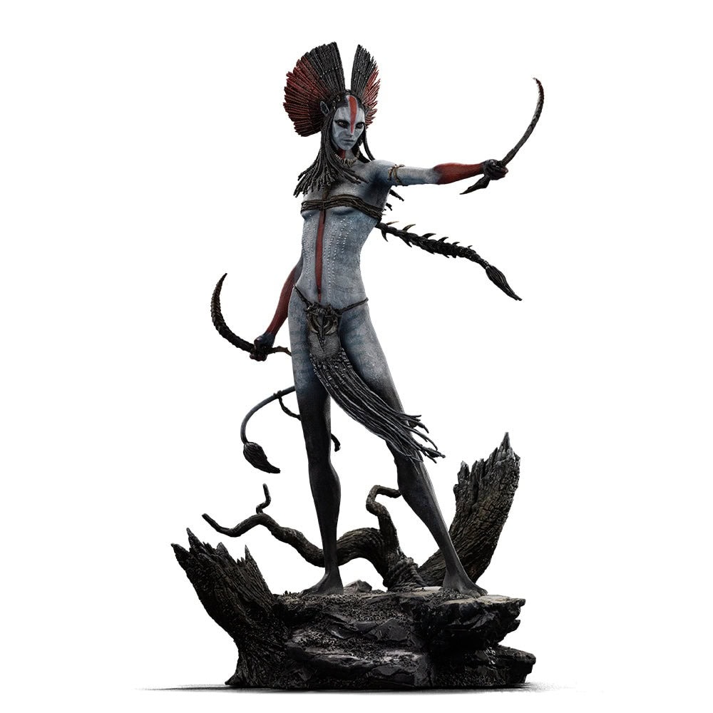 With a tribal and warrior presence, Varang personifies the strength and culture of Pandora’s new tribes. The level of detail in the body paint, weapons, and ornaments makes this piece a true work of art for fans of James Cameron’s world.