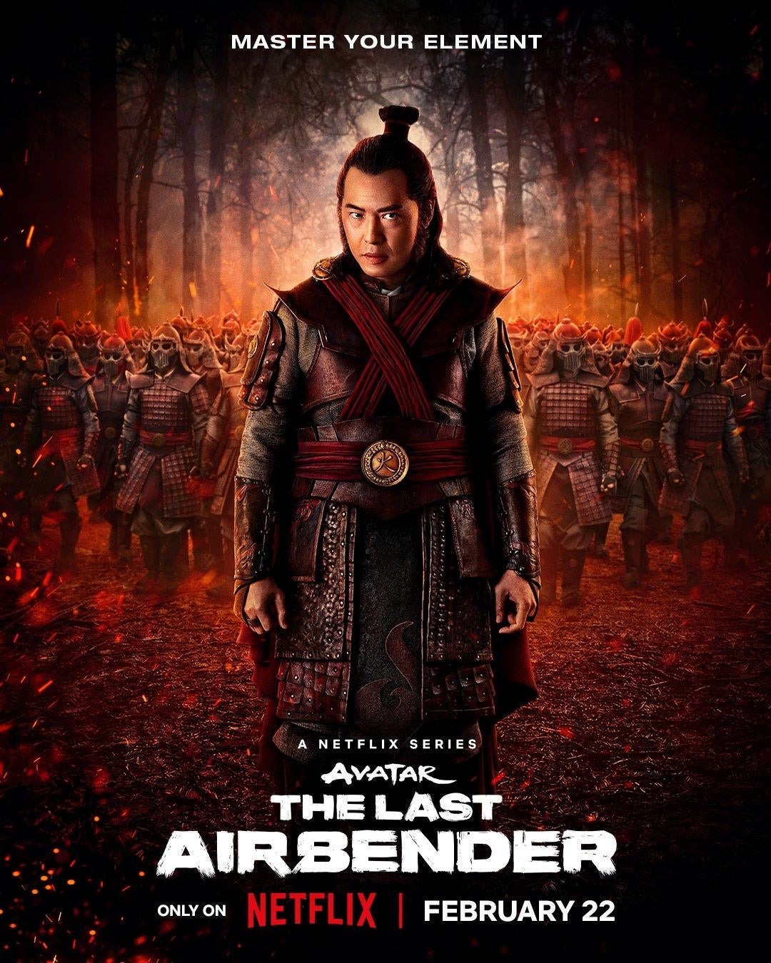 Last week we got a batch of Avatar: The Last Airbender posters for Aang, Zuko, Katara, and Sokka, and now Netflix has dropped four new character one sheets from the fantasy action adventure series for the Fire Nation members Azula (Elizabeth Yu), Ozai (Daniel Dae Kim), Iroh (Paul Sun-Hyung Lee), and Zhao (Ken Leung); check them out here…