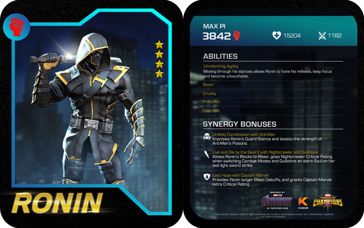 Former S.H.I.E.L.D. agent Clint Barton is taking justice into his own hands this week as Avengers: Endgame’s Ronin makes his debut in Kabam’s hit mobile fighting game Marvel Contest of Champions. Check out Ronin’s champion spotlight gameplay trailer, bio and stats and abilities here…