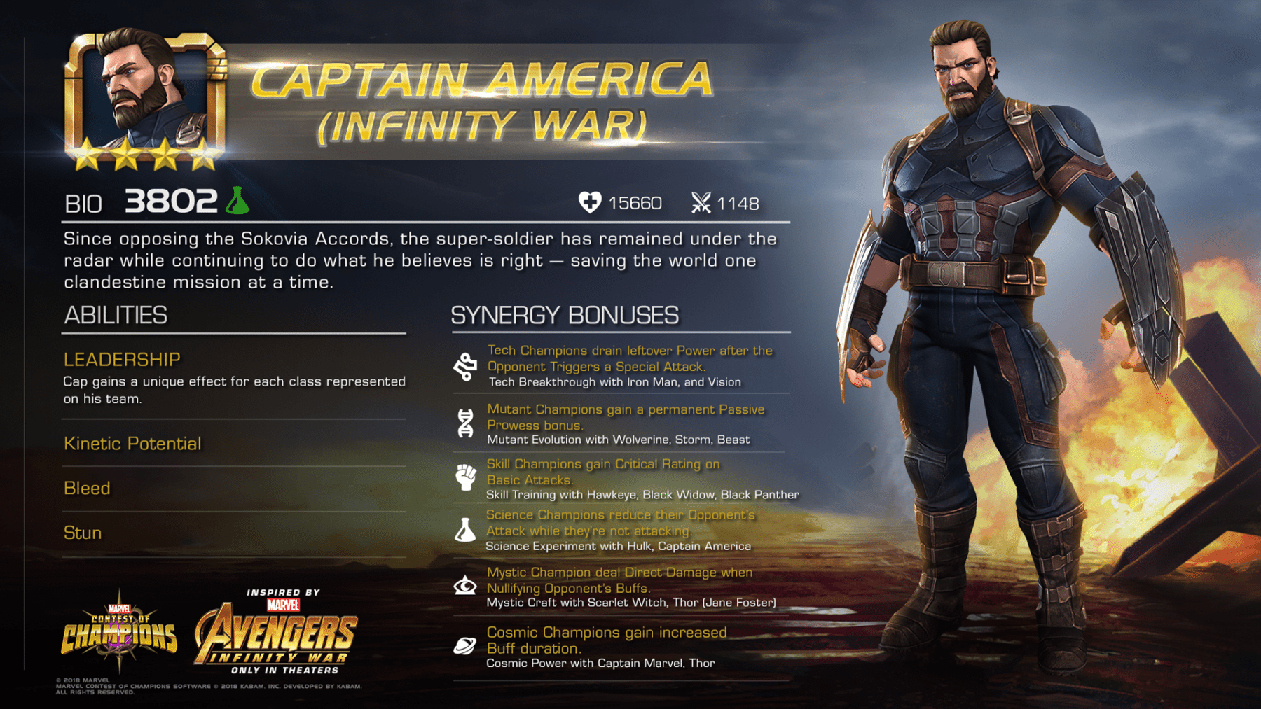 Kabam has announced that Avengers: Infinity War’s Captain America has joined the fight, with the bearded super soldier becoming the latest addition to the hit mobile fighting game Marvel Contest of Champions. Check out Cap’s gameplay trailer, bio, stats and abilities below…