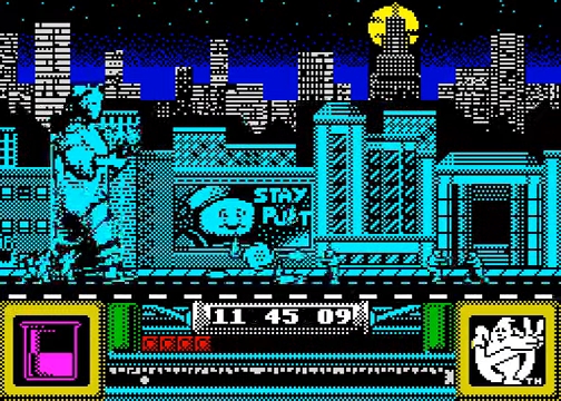 Ghostbusters II features three separate levels inspired by the film. In the first section, players have to guide Ray down the hole in 1st Avenue and grab samples while avoiding ghosts. It’s all a little messy with lots of spooks and so much going on at once, though if you get through that then you’re in for a treat. The second section sees the four climb into the Statue of Liberty and literally walk down a very long street shooting ghosts with her lamp. The ghosts drop slime and this is gathered by the humans running at Liberty’s feet to give her the energy to keep going. Finally, it’s time to take on Vigo the Carpathian (the guy suffering from Carpathian Kitten Loss), rescue Dana’s kid and get rid of him once and for all. I’d say the battle was easy/hard if I had ever had the tenacity to walk forever in Liberty’s shoes.