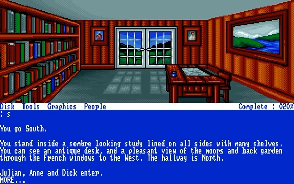 The Famous Five: Five on a Treasure Island game basically took the first story in the series and put it in the style of a text adventure. Although being essentially a text adventure it did have one big difference that made it more interesting, the Five consisted of more than one character. Players could split the 5 up and take them to different locations, allowing them to switch between and control the different children at any different time. Plus it had very nice visuals familiar to those who had read the books.