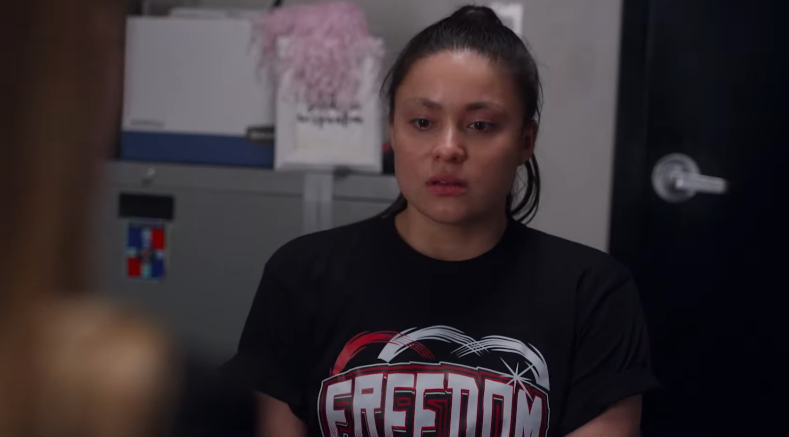 Unfortunately, the narrative surrounding Backspot is fumbled in the equivalent of someone accidentally letting one of those girls fall on their face. It is centered on the ambitious Riley (Devery Jacobs), eager to step up her game alongside her more skilled girlfriend Amanda (Kudakwashe Rutendo) and their friend Rachel (Noa DiBerto), trying out for the Thunderhawks squad.