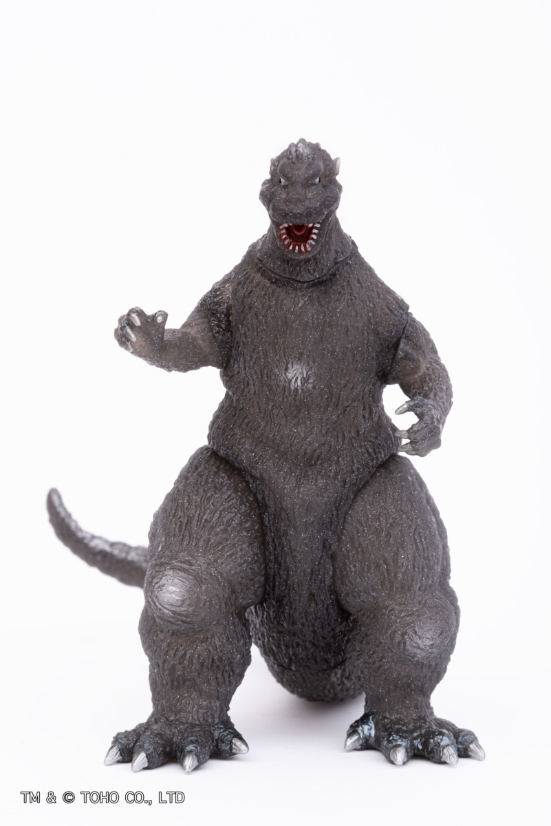 From Bandai the 65th Anniversary 1954 Godzilla Deluxe Vinyl Figure (2019 Convention Exclusive) is an authentic recreation of the iconic kaiju that introduced Godzilla to the world in the 1954 Toho film Godzilla. This highly detailed 2019 Convention Exclusive Godzilla features accurate sculpting in a limited edition translucent flake vinyl with added paint treatments for enhanced realism. The exclusive package is a displayable window box with premium sleeve.