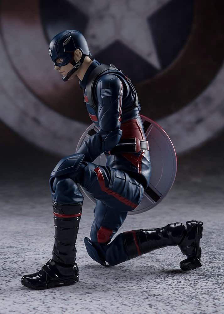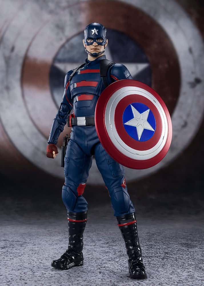 From the series, The Falcon and the Winter Soldier, the second Captain America, John F. Walker, joins S.H.Figuarts! Includes his trademark shield and effect parts for replicating shield-throwing scenes. Also includes an optional head without a helmet.