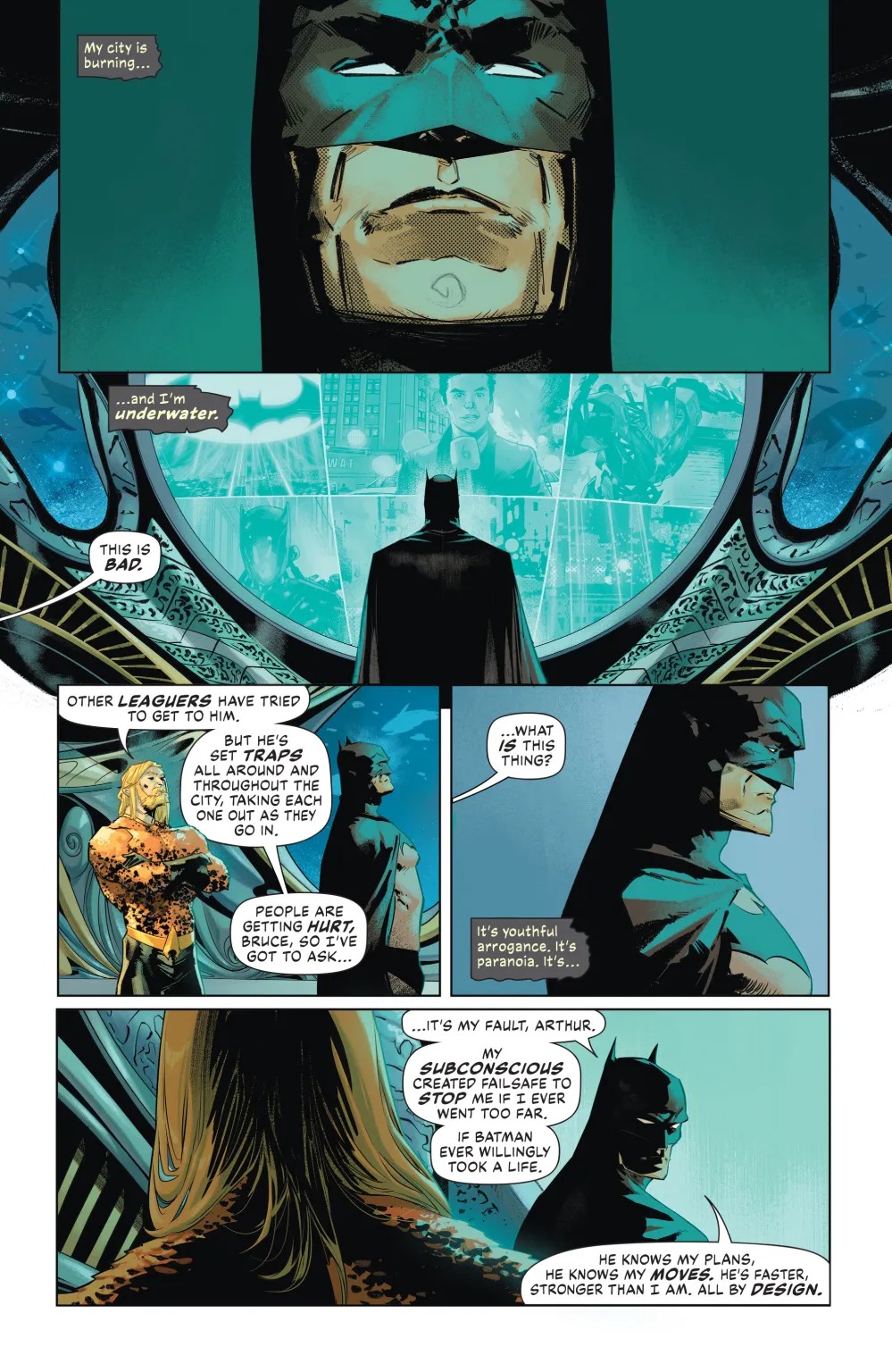 Failsafe countered every move Batman-and the Justice League-have attempted. Is the Dark Knight out of options on…Earth? The best-selling FAILSAFE arc continues! In the back-up, we travel back to the early years of the Dark Knight Detective, revisiting his most psychadelic/mind breaking period. And the dawn of his back-up protection system…ZUR-EN-ARRH!