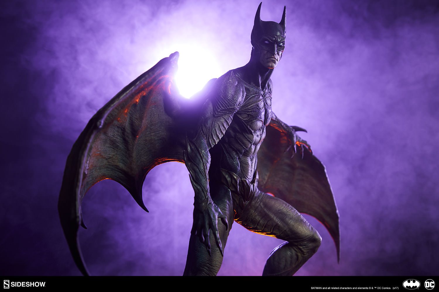 The Exclusive edition of the statue comes with a swap-out portrait that depicts the ghoulish defender of Gotham as an even more monstrous, bat-like entity. This “Demon Bat” appearance awakens the most fearsome features of Batman as he appears in your worst nightmares. The exclusive version also includes a small pedestal for displaying the alternate portrait.